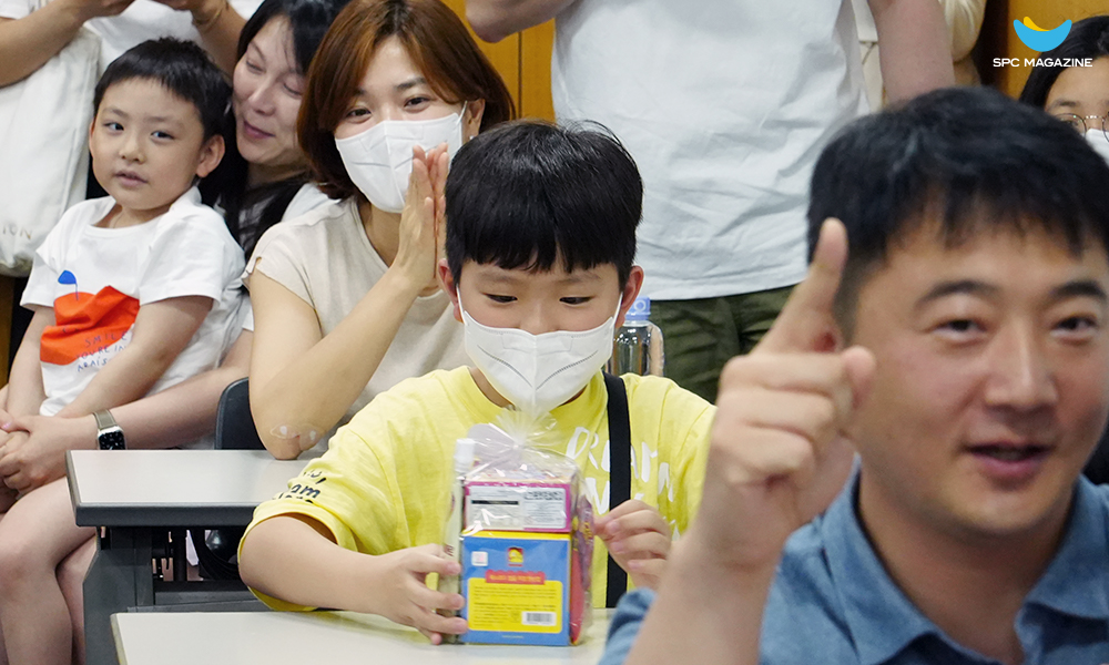 在“儿童蛋糕教室”活动开始之前,参加者们聚集在4楼食品科学大学讲堂,进行了破冰活动,体验了各种各样的问答,同时彼此也更加亲近。孩子们在没有父母的帮助的规则下进行了问答竞赛,但是孩子们竟回答出了SPC的创立年份和Logo的含义,让大人们实为惊喜。最后,为答对问题的参加者赠送了惊喜礼物,留下了难忘的回忆。
