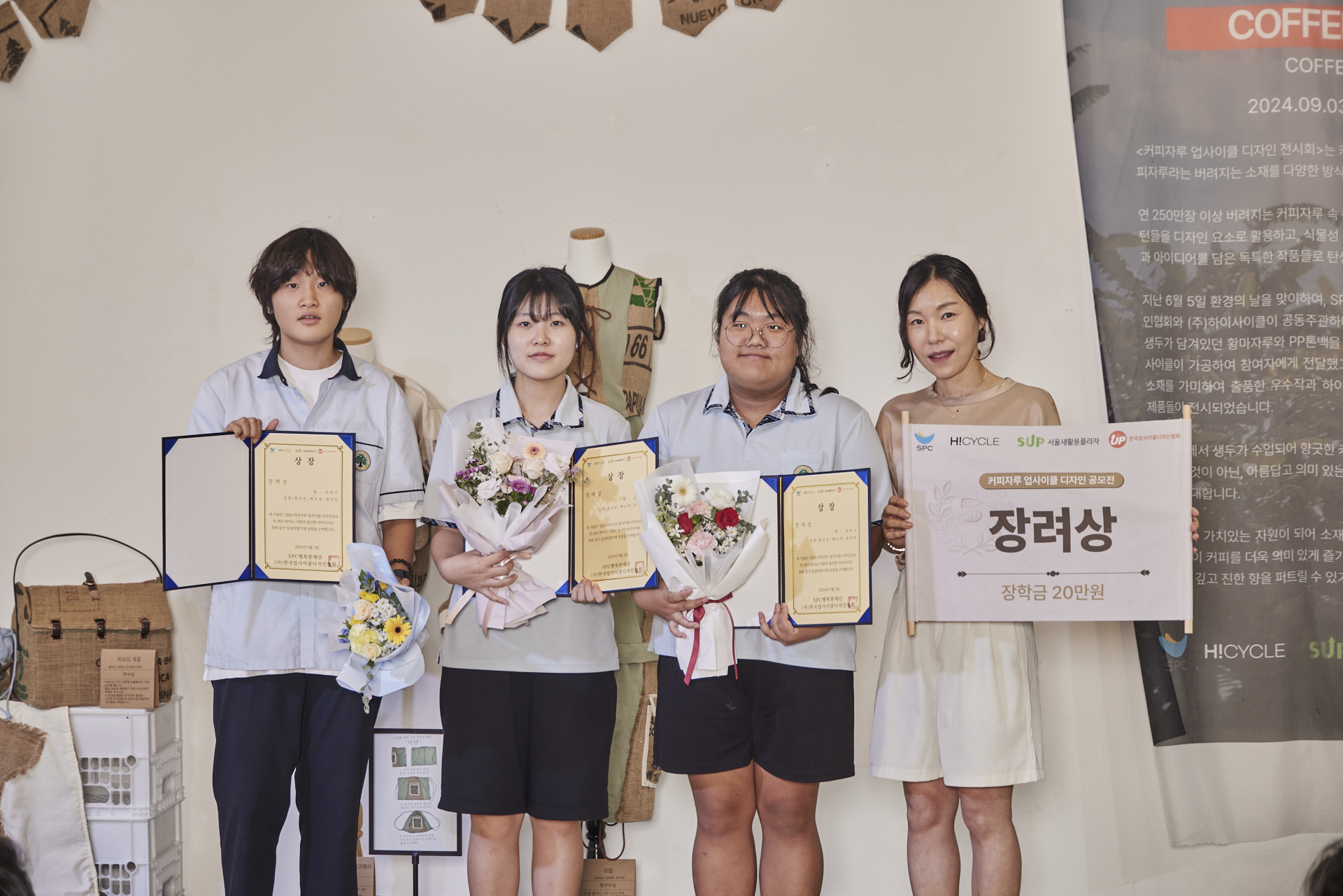 제2회 ‘커피자루 업사이클 디자인 공모전’의 우수상, 장려상 수상 학생들