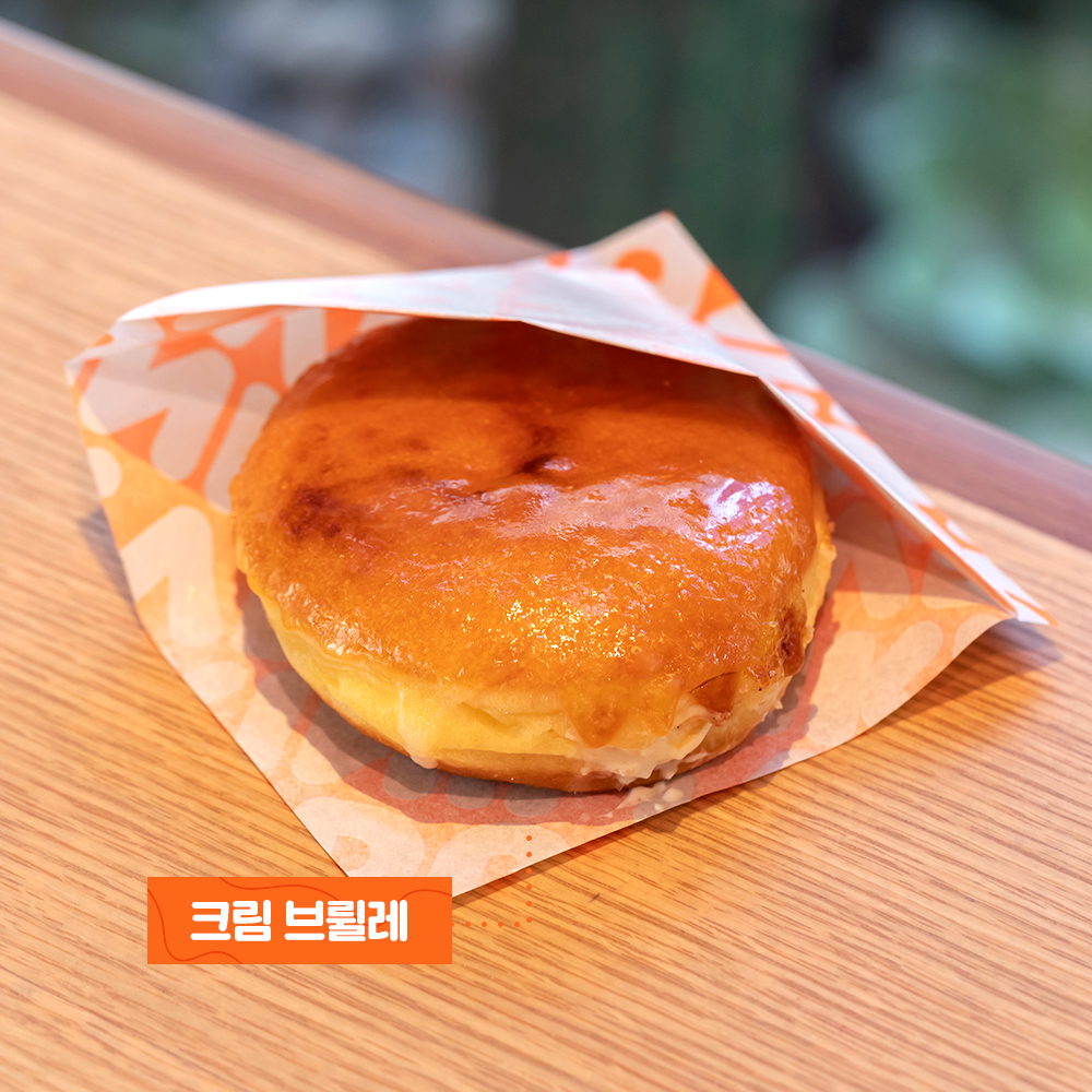 이탈리아 바질이 함유된 브런치 도넛인 ‘에그 베네딕트 도넛’이 가장 인기가 좋습니다. 이 제품은 영국 황실 우유로 유명한 저지우유와 계란을 넣은 부드러운 반죽에 빵가루를 입혀 바삭하게 튀겨낸 도넛인데요. 도넛을 반으로 가르면 반숙 계란이 먹음직스럽게 드러납니다. 이색적인 비주얼과 뛰어난 맛 덕분에 고객분들께 많은 사랑을 받고 있습니다. 국내산 영양 부추와 대파 분말, 크림 치즈를 도넛 속에 듬뿍 넣은 ‘대파 크림 치즈 도넛’과 프랑스 대표 디저트인 크림 브륄레를 도넛으로 구현한 ‘크림 브륄레 도넛’도 인기가 좋습니다.