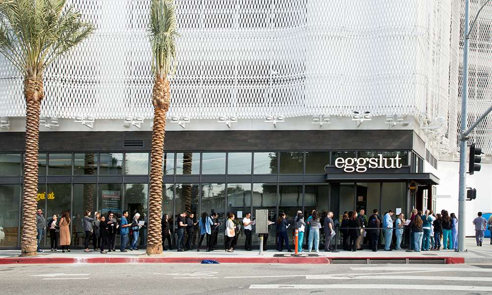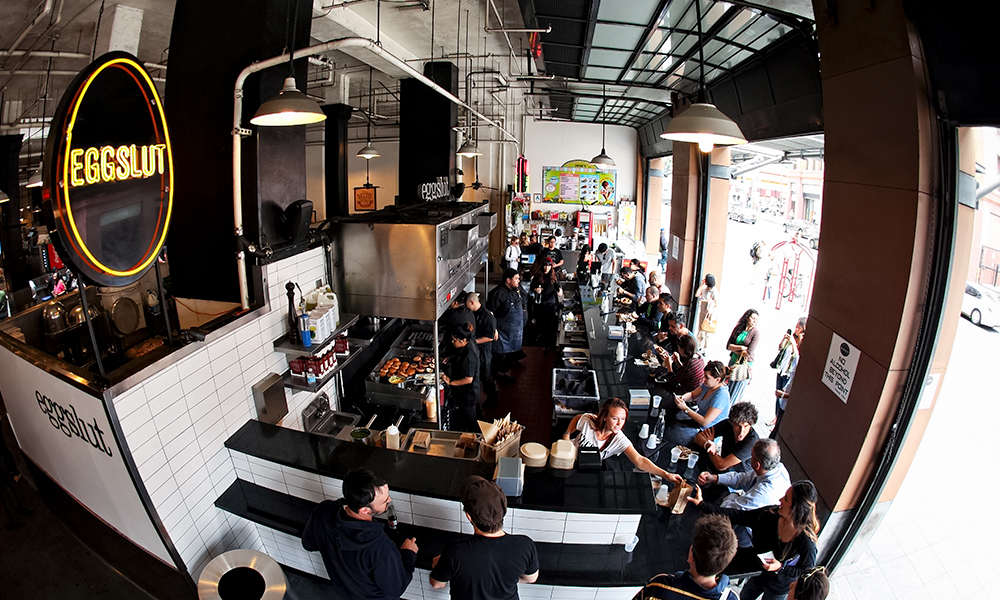 에그슬럿은 미국의 스타 셰프 ‘앨빈 카일란(Alvin Cailan)’과 그래픽 아티스트 출신 ‘제프 베일스(Jeff Vales)’가 2011년 LA 지역의 푸드트럭으로 시작한 샌드위치 브랜드입니다. 파인다이닝 경력을 보유한 앨빈 카일란이 ‘달걀’을 창의적으로 재해석해 만들어낸 달걀 샌드위치와 대표 메뉴 ‘슬럿(Slut, 감자와 달걀로 만든 부드러운 식감의 시그니처 메뉴)’으로 주목 받기 시작했는데요. 젊은 두 청년이 팝업 푸드트럭으로 기획했던 에그슬럿은 미디어와 평론가, 무엇보다 팬의 열성적인 지지를 받으며 성공을 거뒀습니다.