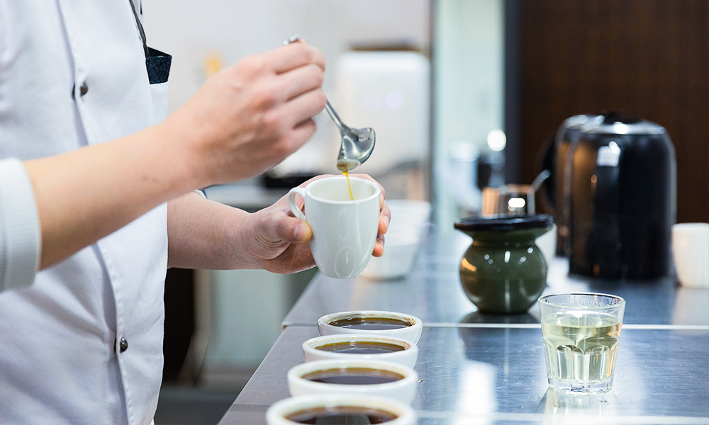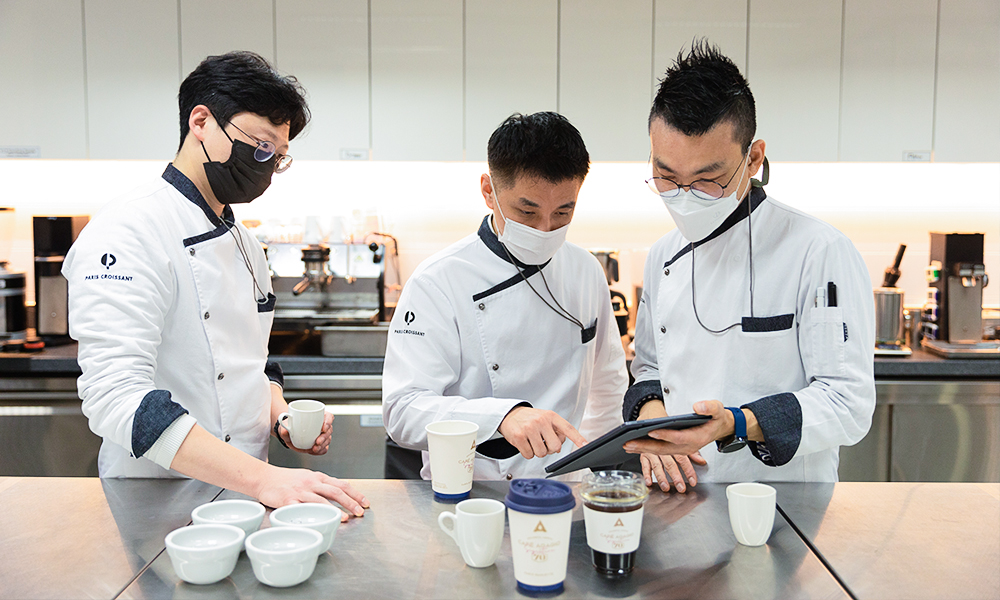 원두를 테스트하는 SPC그룹 커피개발실 연구진들의 모습