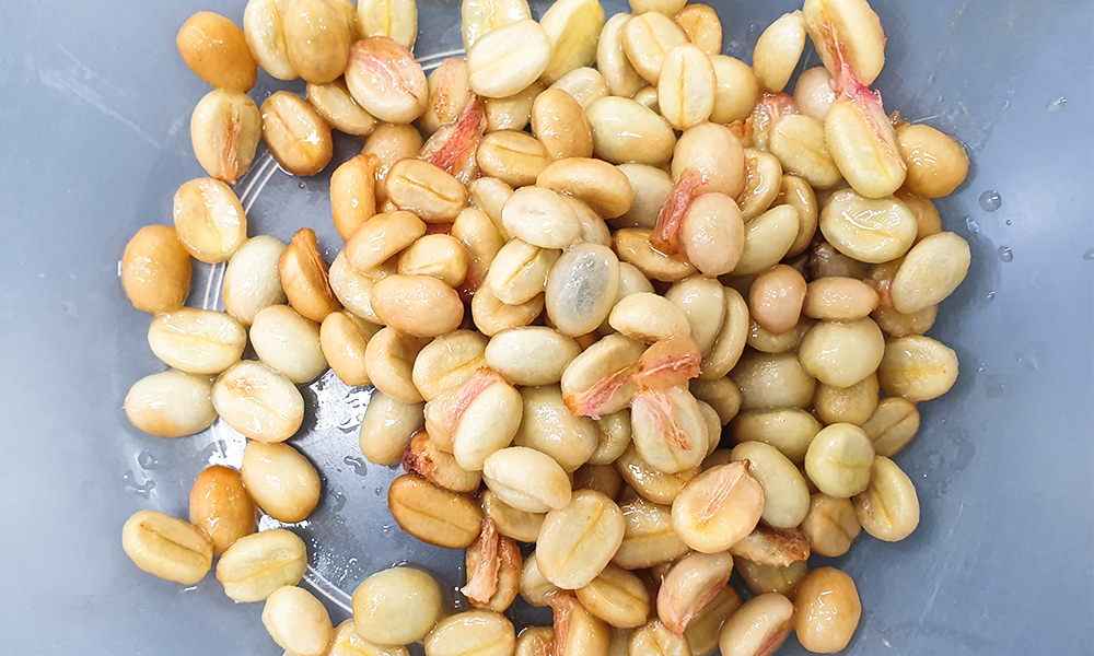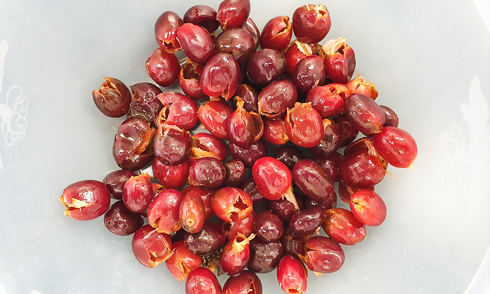 발효를 거친 후 분리된 커피 체리