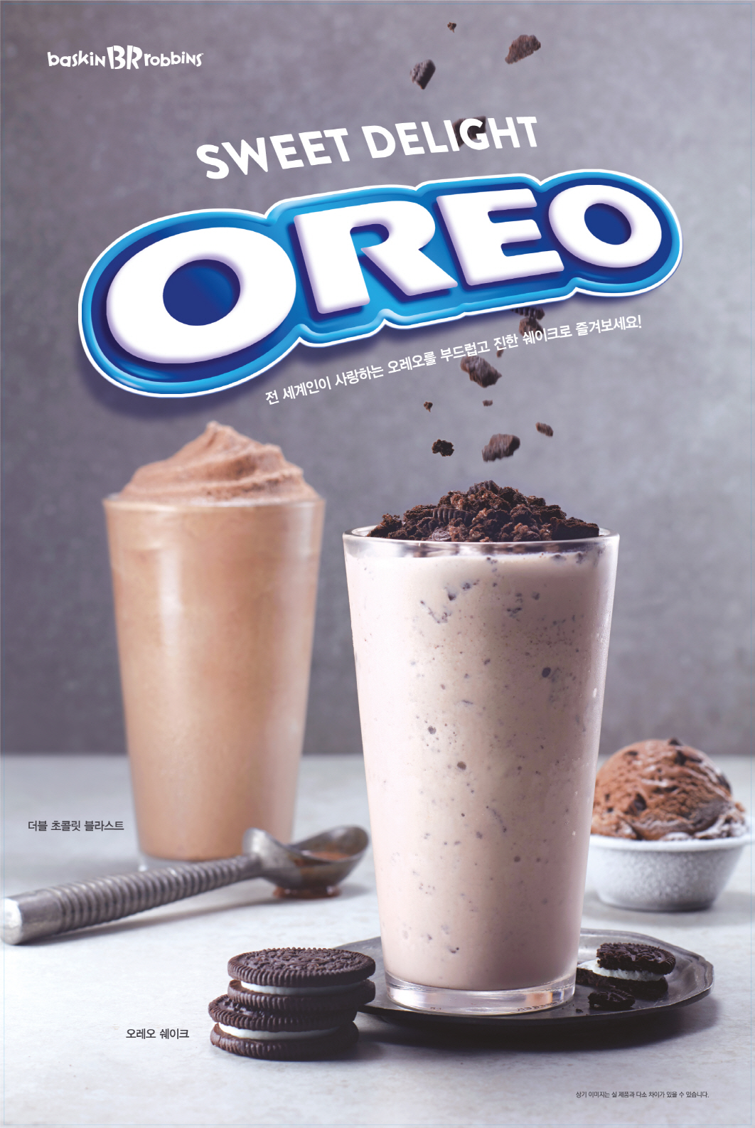 먼저, 쿠키 브랜드 ‘오레오(Oreo)’와의 협업한 ‘오레오 쉐이크’는 바삭한 식감의 오레오 쿠키와 배스킨라빈스의 바닐라 아이스크림이 조화롭다. 두 가지 초콜릿 아이스크림(초콜릿, 초콜릿 무스)이 들어가 달콤한 맛이 배가된 ‘더블 초콜릿 블라스트’도 선보인다. 가격은 쉐이크(레귤러) 4,800원, 블라스트(레귤러) 4,500원.
