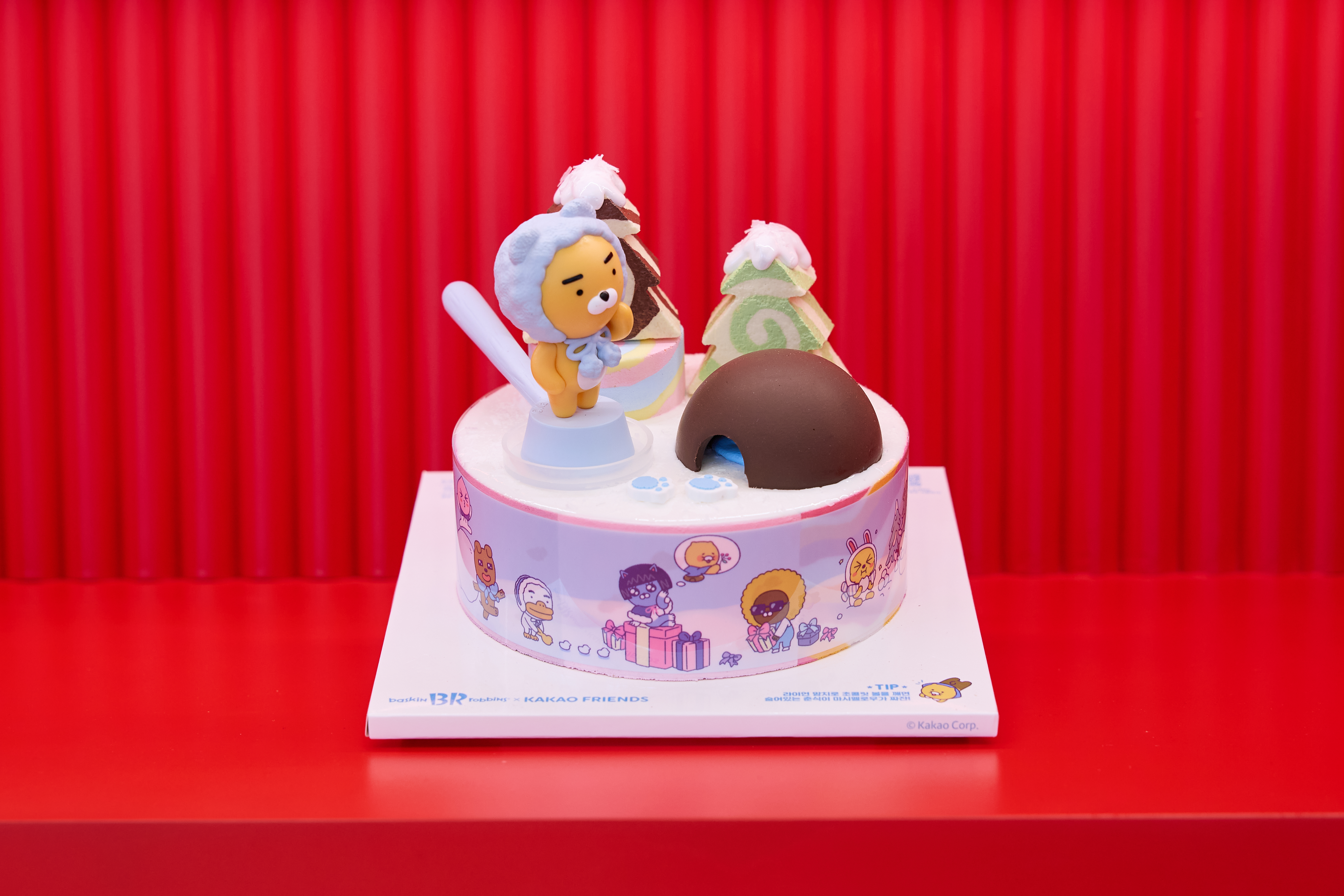 스노우 볼에는 ‘트리플 초콜릿’, ‘바나나’, ‘초콜릿’ 등의 플레이버가, 큐브에는 ‘레인보우 샤베트’, ‘엄마는 외계인’, ’31요거트’ 등의 플레이버가 조합되어 있어 모두가 만족할 수 있는 케이크입니다.