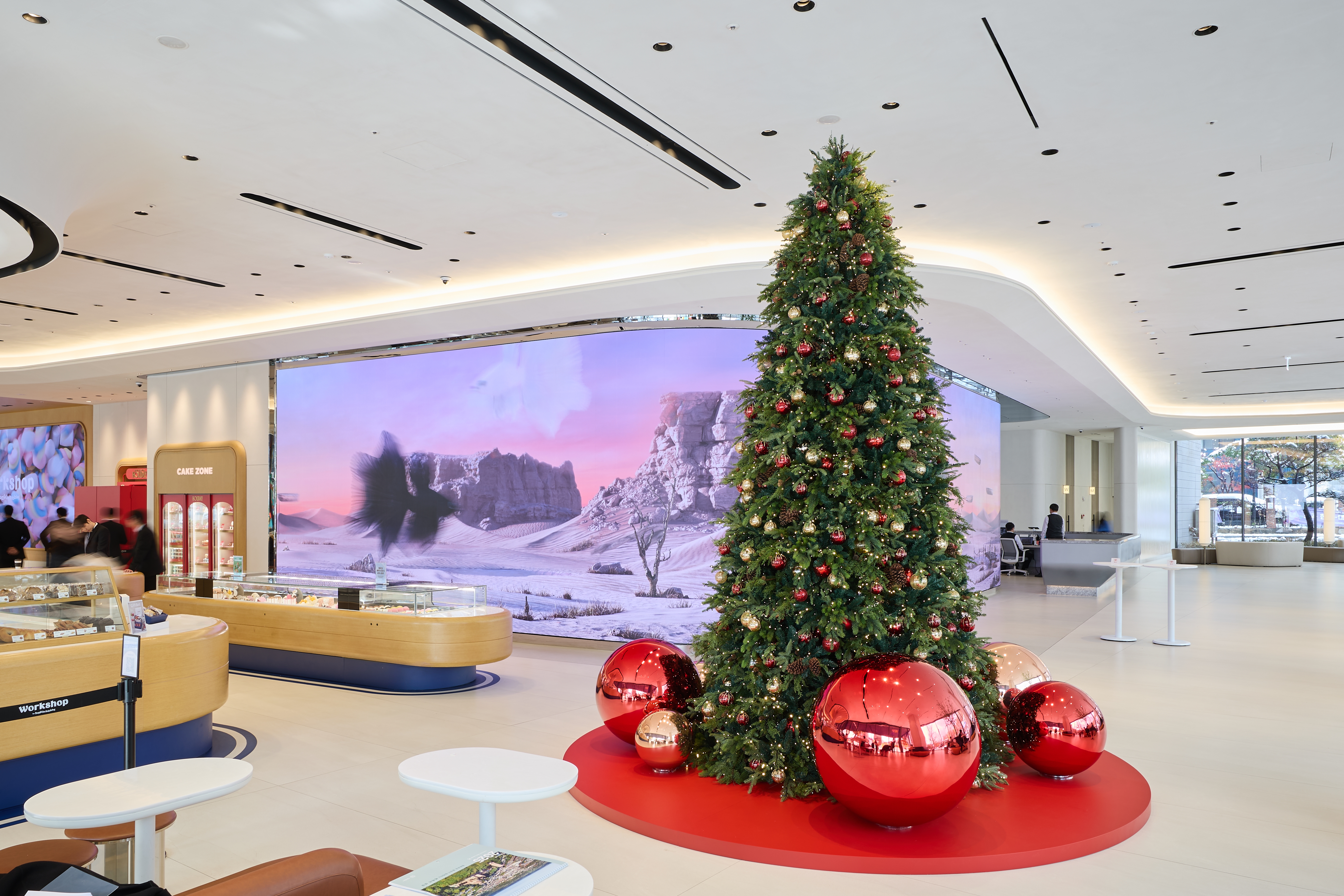 워크샵 바이 배스킨라빈스에 설치된 대형 크리스마스 트리