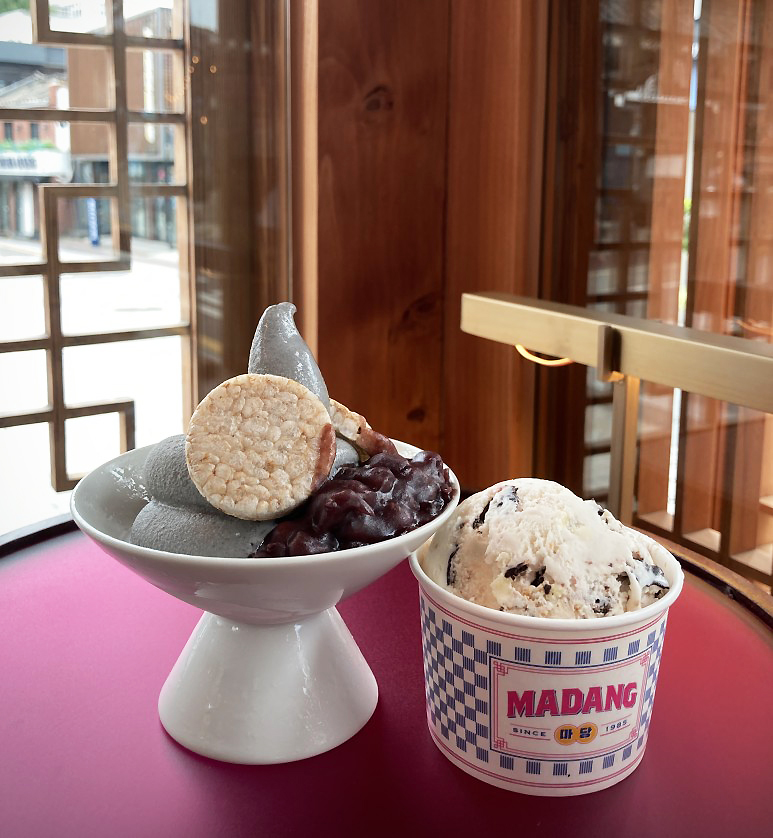 한옥 콘셉트에 맞게 디저트에도 한국의 맛이 가득한데요. 허니 버터 옥수수나 팥을 취향에 따라 올린 뒤 소프트아이스크림, 현미 칩과 함께 먹는 ‘마당 선데’, 인절미가 들어간 와플 속에 아이스크림을 올린 ‘와와떡’ 등 시그니처 메뉴도 만나보세요. 낮은 반상에서 먹으니 레트로 느낌 가득! 특별한 추억을 남겨보세요.