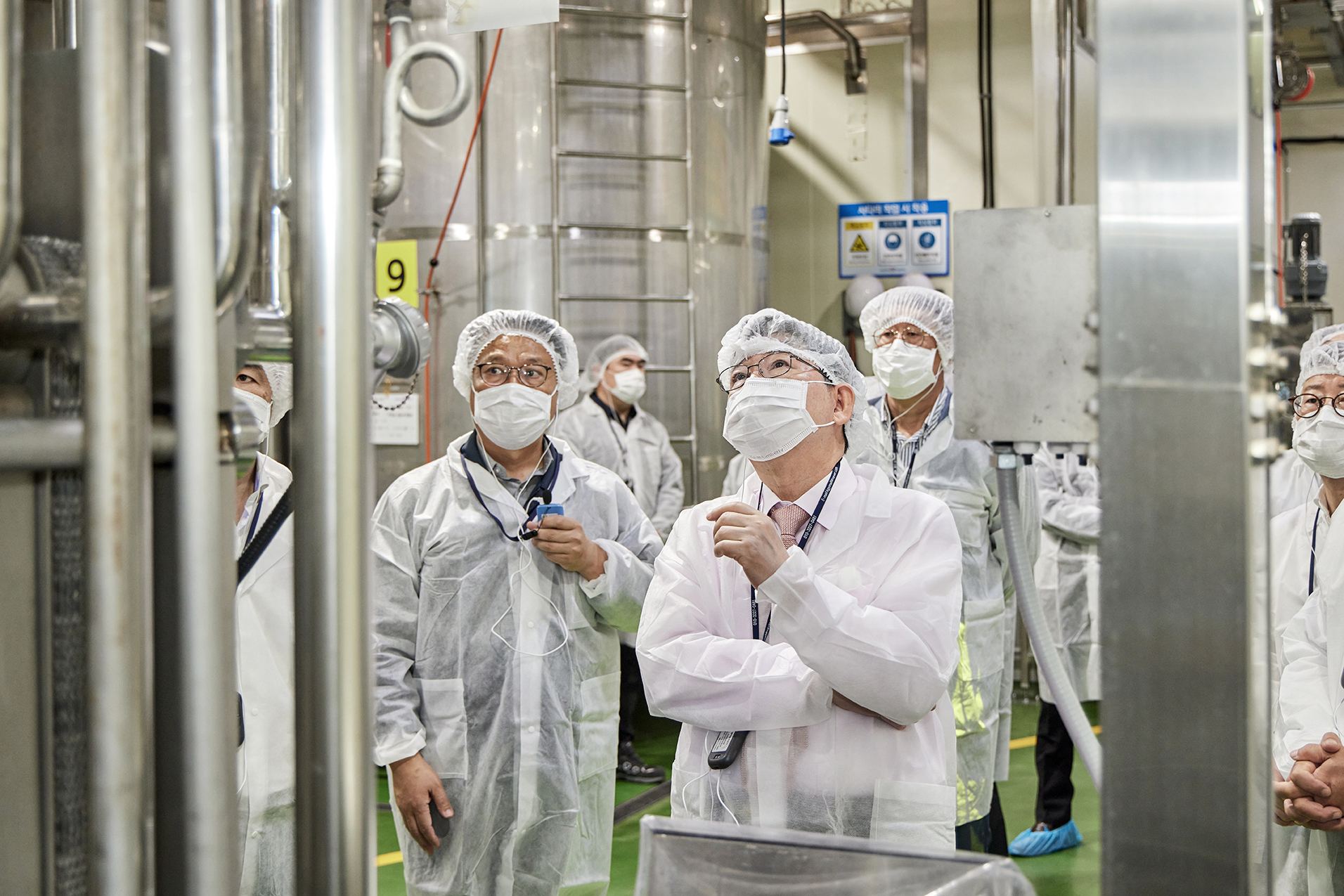 비알코리아 음성공장을 찾아 현장의 안전을 점검하는 정갑영 위원장과 SPC 안전경영위원회