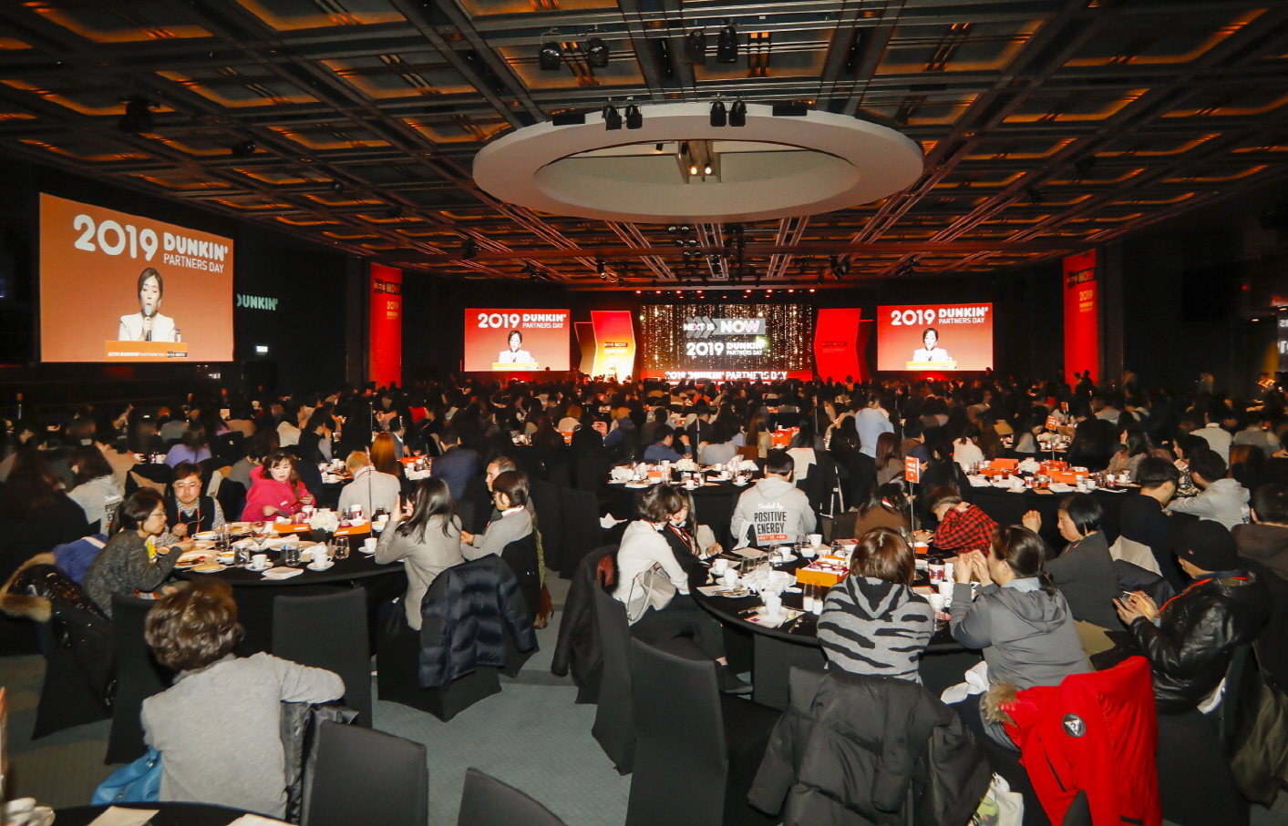 ‘25년간의 던킨’, ‘변화하는 던킨’, ‘새로운 던킨’의 주제로 구성된 던킨도너츠 정책설명회는 24일 개최됐다. 브랜드 창립 25주년 기념식과 우수가맹점 시상식 등을 통해 그동안의 성과를 축하했고, 2019년 비전 선포와 함께 새롭게 선보일 커피 및 음료, 도넛, 핫 샌드위치 등 신제품과 주요 마케팅 전략을 공개하며 본사와 가맹점주의 결속을 다졌다. 특히, 가맹점주들은 ‘던킨’으로의 브랜드명 전환에 대한 의견을 제시하고, 변화에 동의하는 등 던킨의 비전 수립에 적극 동참했다.