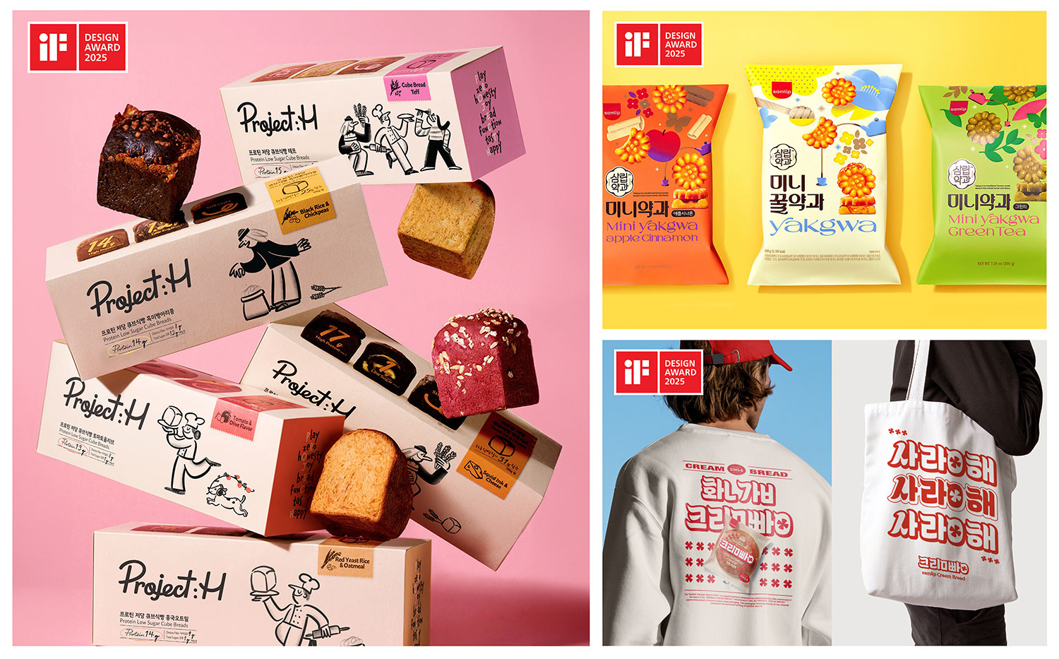 삼립이 출품한 디자인 중, 브랜딩 분야에서 △프로젝트:H △삼립약과가 선정됐다. △프로젝트:H는 저당 베이커리 브랜드로, 건강한 라이프스타일과 친환경을 추구하는 브랜드 철학을 심플한 디자인과 소재로 표현하고 컬러 레이블 시스템으로 체계적인 브랜딩을 구축했다. 전통 간식을 K-디저트로 확장하기 위해 리브랜딩한 △삼립약과는 둥근 외형과 꿀이 맺히는 듯한 질감을 일러스트 디자인으로 개발해 독창적인 분위기를 완성했다.