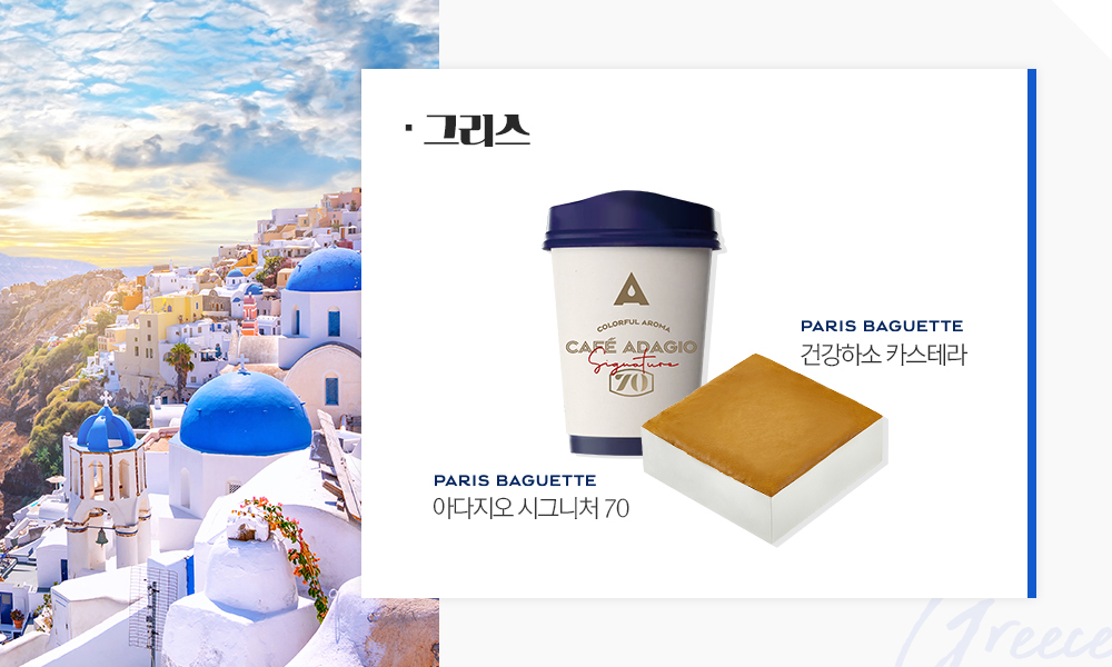 그리스 전통 케이크인 바실로피타를 직접 먹으러 갈 수는 없지만 비슷한 맛을 느낄 수 있는 파리바게뜨의 ‘2021 건강하소 카스테라’와 ‘아다지오 시그니처 70’ 커피를 통해 그리스의 새해 문화를 엿볼 수 있습니다. ‘2021 건강하소 카스테라’는 신축년 기념으로 출시된 신제품인데요. 프리미엄 버터, 바닐라빈을 넣고 구워 부드러운 맛이 특징입니다. 또한 ‘아다지오 시그니처 70’은 SPC그룹에서 개발한 토종 발효종을 사용해 출시된 무산소 발효 커피로 말린 과일, 꽃향기, 아몬드, 캐러멜 등 풍부한 향미를 느낄 수 있습니다.