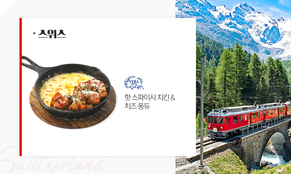 스위스에서는 새해에 한입 크기로 썬 빵이나 고기, 채소, 과일 등을 긴 꼬챙이에 끼워 뜨겁게 녹인 치즈에 찍어 먹는 ‘퐁듀’를 즐기는데요. 산간 지역이 많아 유달리 추운 겨울을 보내는 스위스에서 추위를 이기고 새로운 해를 맞이하기 위한 풍습입니다. 프랑스어로 ‘녹이다’라는 뜻의 ‘퐁드르(fondre)’에서 유래한 ‘퐁듀’는 우리나라에서도 익숙한 음식인데요. 역삼동의 핫플레이스인 SPC스퀘어에 자리 잡은 베라피자 SPC스퀘어점에서만 만날 수 있는 ‘핫 스파이시 치킨 & 치즈 퐁듀’를 추천합니다. 화덕에 노릇하게 구운 핫 스파이시 치킨에 부드럽고 고소한 치즈 퐁듀가 곁들여져 추위를 녹이기 좋은 메뉴인데요. 베라피자에서 1월의 기록적인 한파를 이겨내고 새로운 시작을 맞이해보세요!