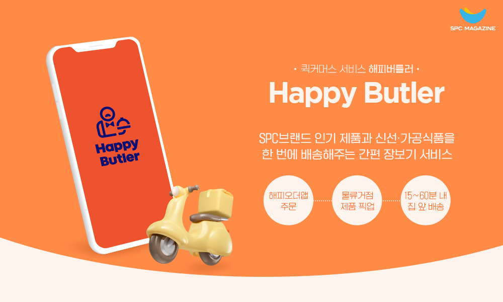 섹타나인이 선보인 비대면 온라인 서비스는 이뿐만이 아닙니다. 12월부터 운영 중인 ‘해피버틀러’는 모바일 앱으로 편리하게 장보기가 가능한 퀵커머스 서비스인데요. 롯데슈퍼와의 제휴를 통해 가공식품, 신선식품, 생활잡화 외에도 SPC그룹 브랜드 인기 제품을 함께 주문할 수 있도록 했습니다. 해피버틀러는 해피오더 앱 내에서 이용할 수 있으며, 바로 배달과 예약 배달 중 선택이 가능합니다. 섹타나인은 더욱 많은 고객이 해피버틀러를 이용할 수 있도록 향후 점진적으로 해피버틀러 서비스 지역 범위를 확대할 예정입니다.
