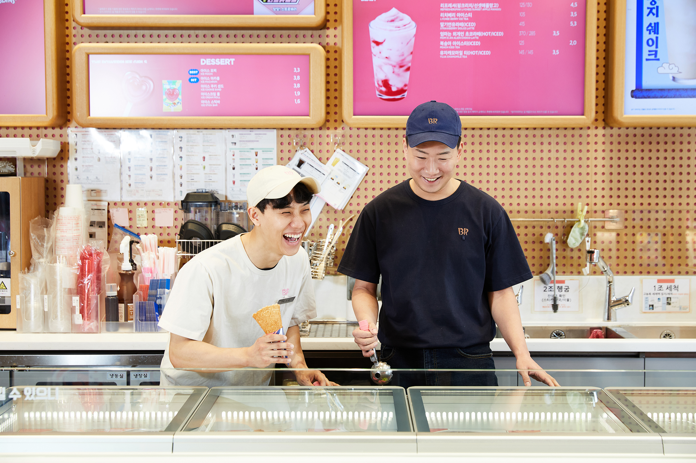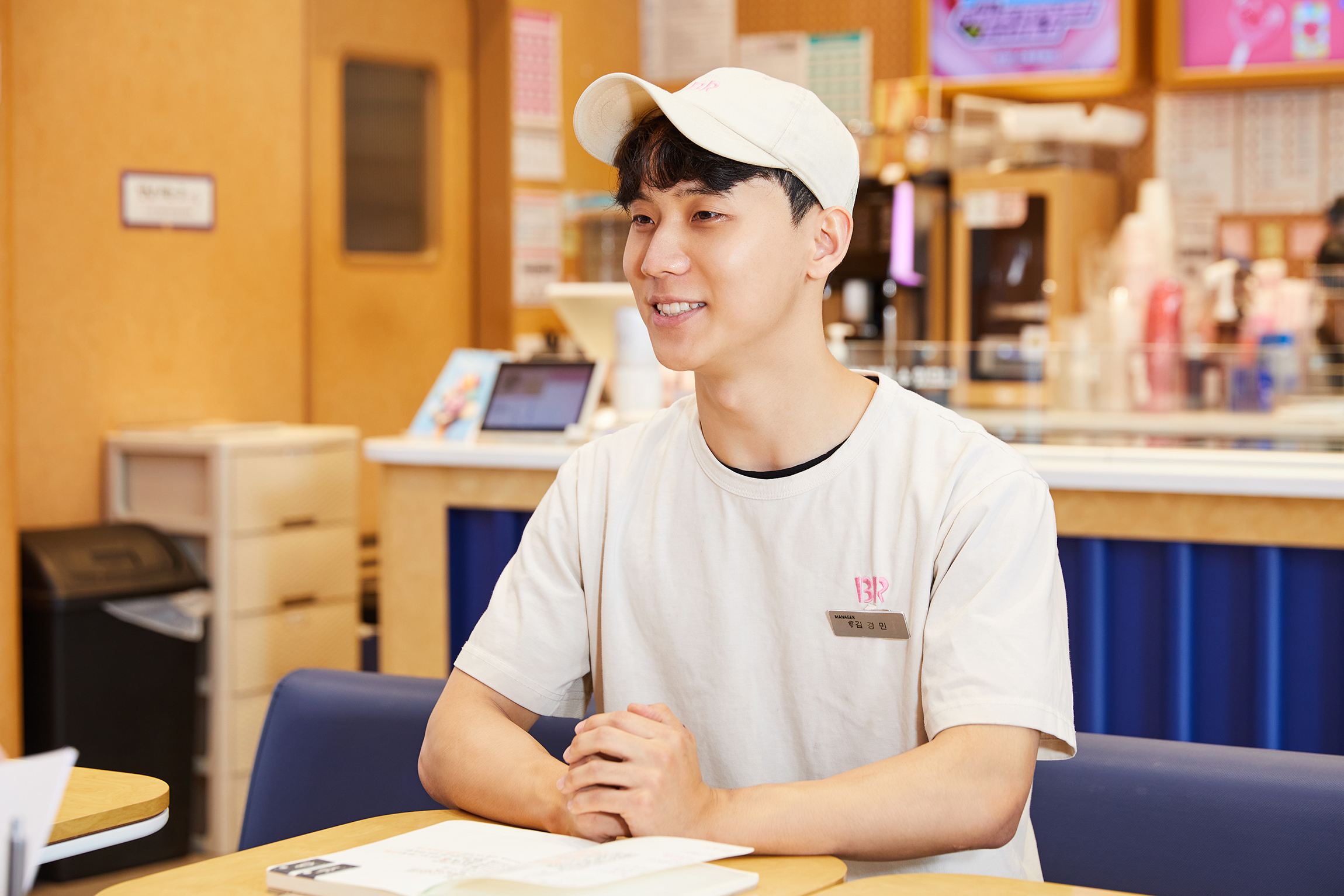 안녕하세요. 저는 현재 배스킨라빈스 동탄푸른마을점에서 매니저로 근무하고 있는 김경민입니다. 매장 운영 지원 및 재고 관리, 교육 등 전반적인 업무를 담당하고 있습니다. 어릴 적부터 아이스크림을 워낙 좋아했기도 하고요. (웃음) 특별한 날 부모님께서 아이스크림 케이크를 사주시는 날이면 큰 선물을 받은 듯 기뻤습니다. 이 기쁨을 저도 다른 사람들에게 나눠주고 싶다고 생각해서 배스킨라빈스에 지원하게 됐어요.