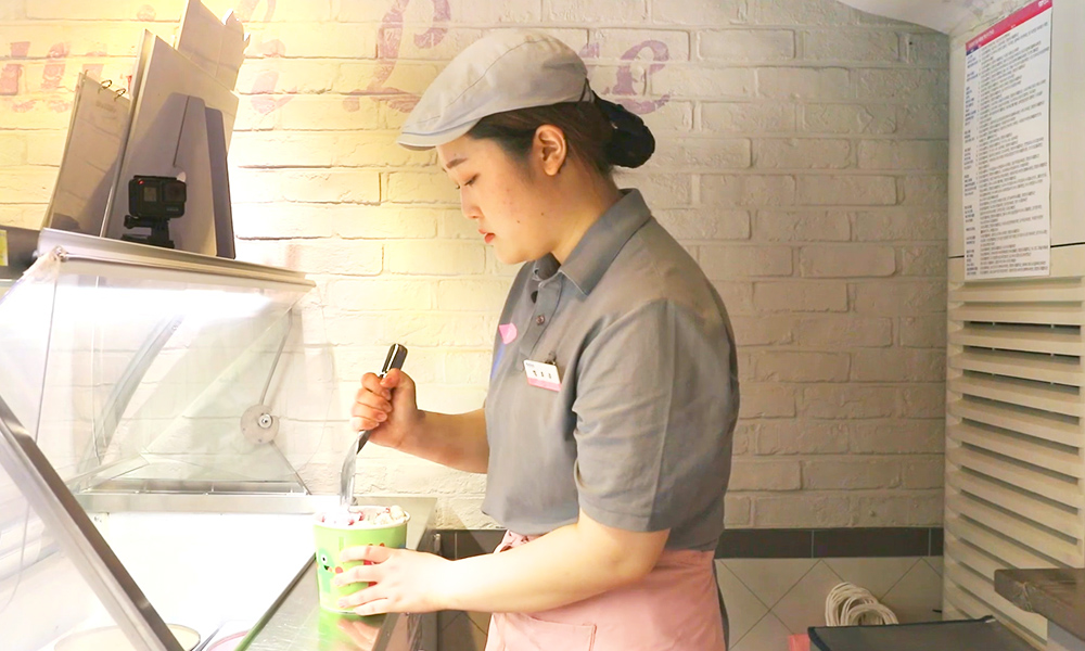 제가 일하는 배스킨라빈스 분당 장안타운점에서는 ‘엄마는 외계인’, ‘아몬드봉봉’, ‘슈팅스타’ 순으로 인기가 가장 많아요. 배스킨라빈스가 아이스크림의 종류도 다양하고 특이한 이름을 가지고 있다 보니 재미있는 에피소드도 많은데요. ‘피스타치오 아몬드’ 아이스크림을 ‘파스타치오 아몬드’로 말하거나 ‘엄마는 외계인’이 ‘엄마는 이계인’으로 둔갑하고, ‘아빠는 딸바봉’ 아이스크림이 ‘아빠는 딸기봉’이 되기도 해요. 덕분에 손님과 아르바이트생 모두 웃음이 터지는 순간들이 많습니다.