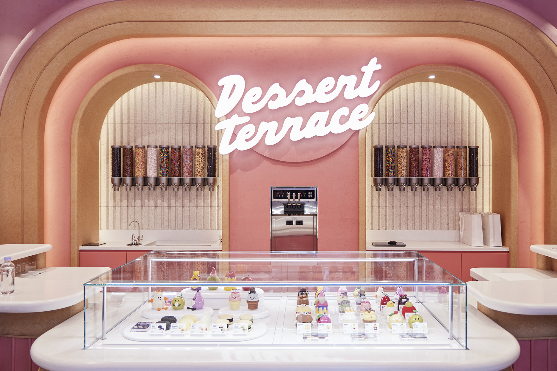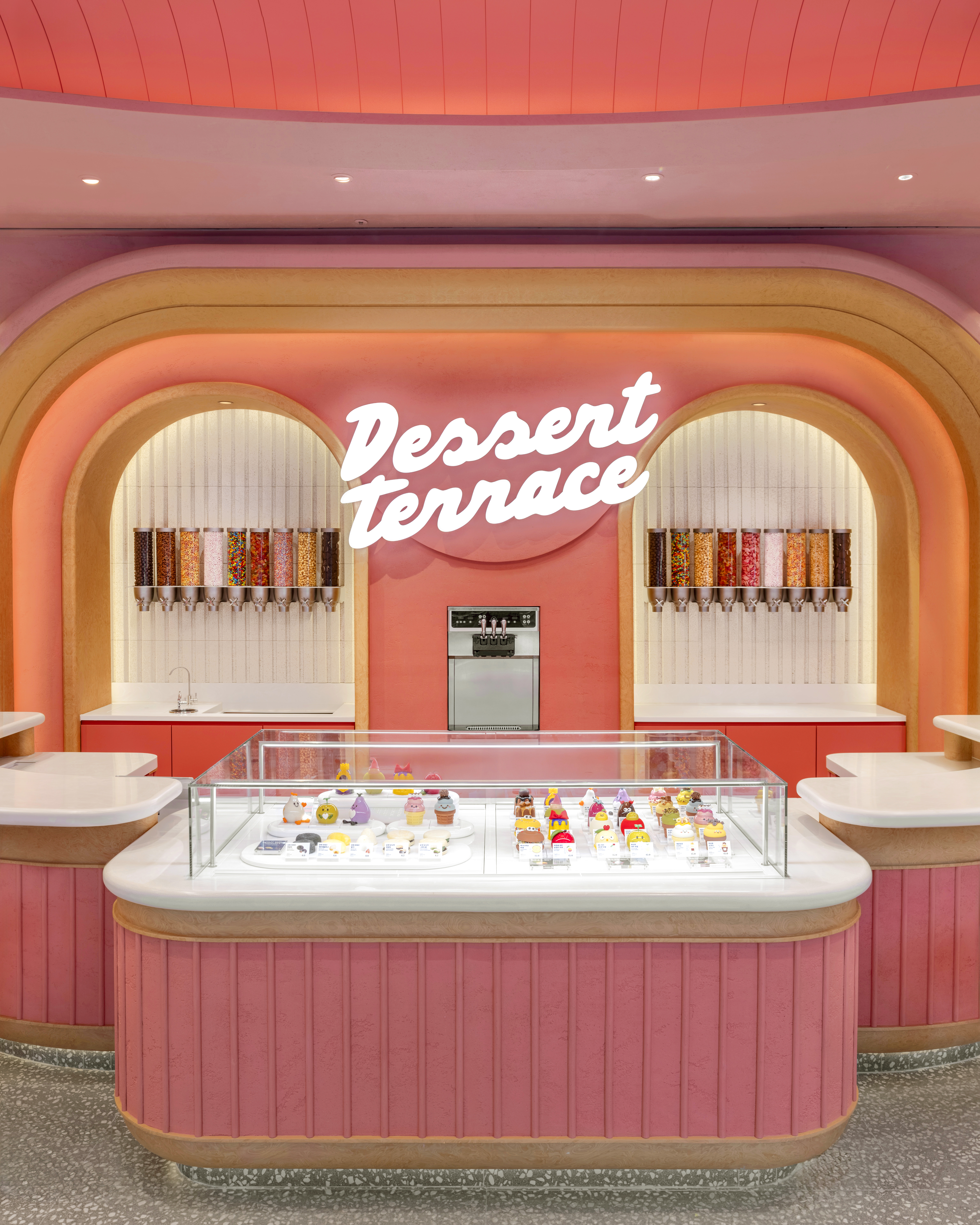 그중에서도 가장 눈길을 끄는 공간은 단연 디저트 테라스! 모찌 라이브, 포켓 모나카, 스모어 마시멜로우처럼, 주문과 동시에 매장에서 바로 조리되는 디저트를 직접 보고, 즐기고, 맛볼 수 있는 공간이죠.