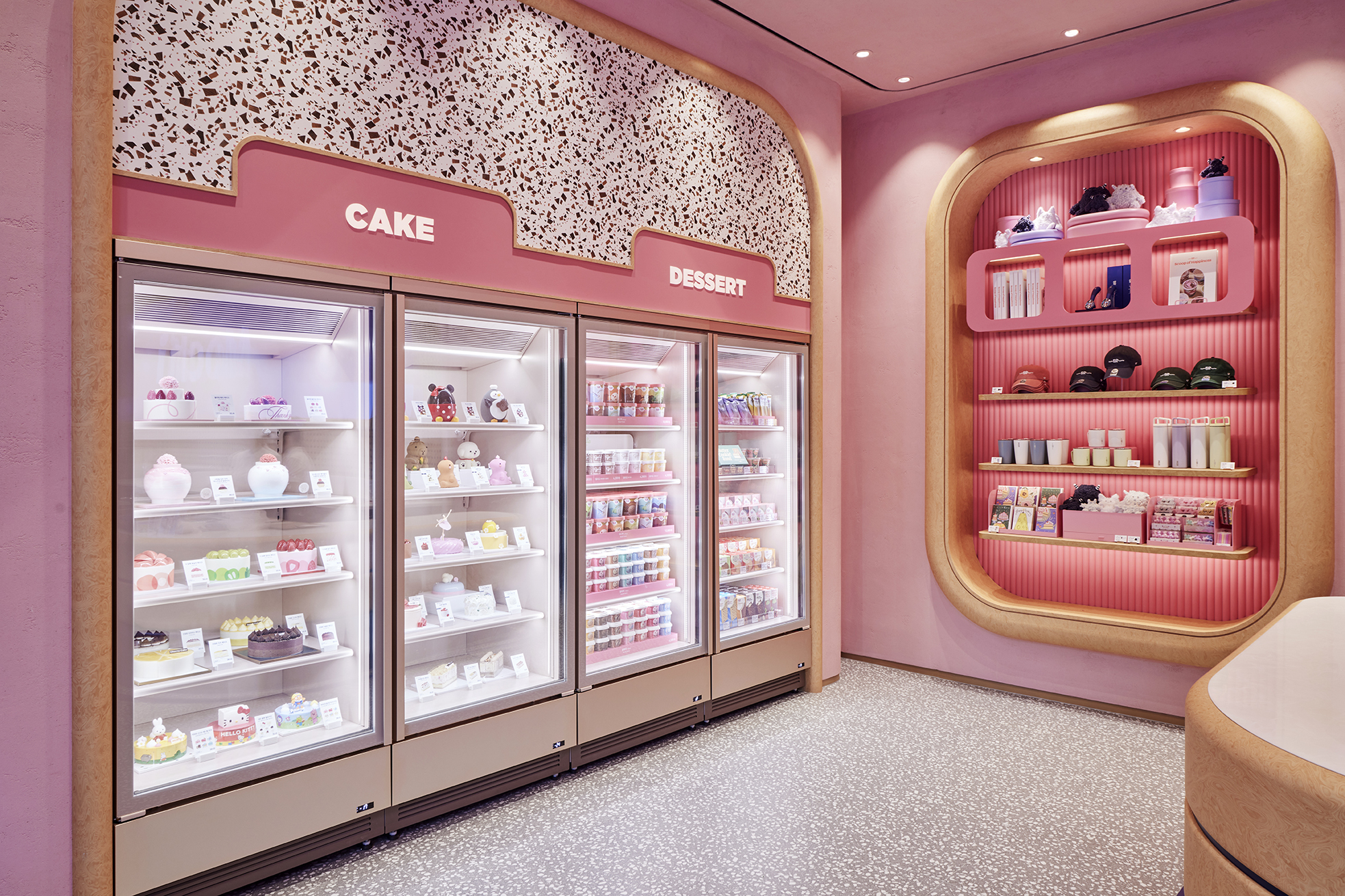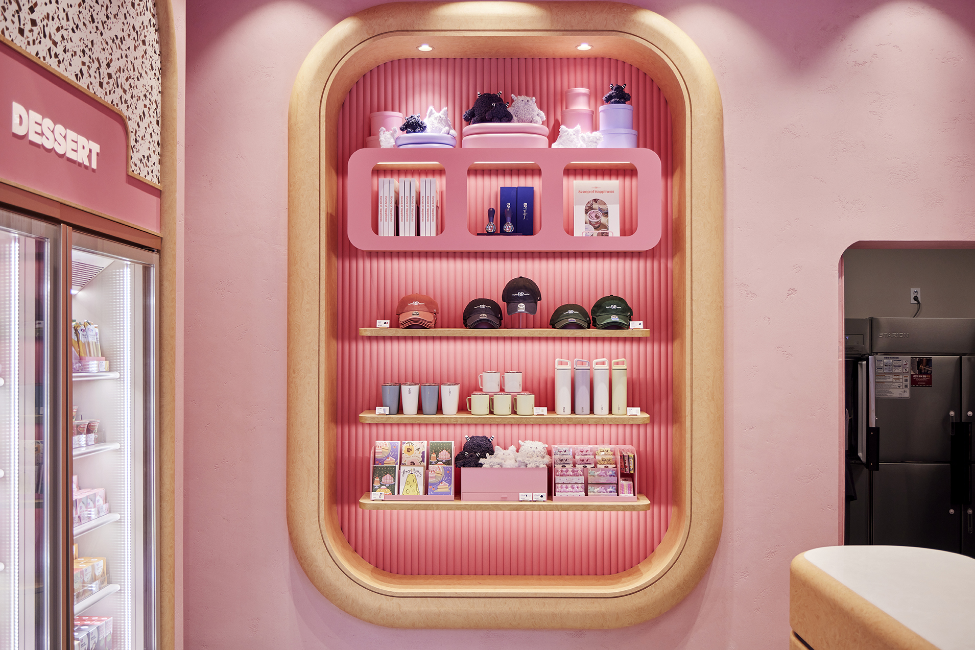 또한 매장 곳곳에는 배스킨라빈스만의 위트와 감성을 담은 굿즈다양한 콜라보레이션 케이크가 전시되어 있었는데요. 제품을 구매하는 공간을 넘어, 브랜드의 매력을 오감으로 체험할 수 있는 복합적인 공간으로 설계된 점이 인상적이었습니다.