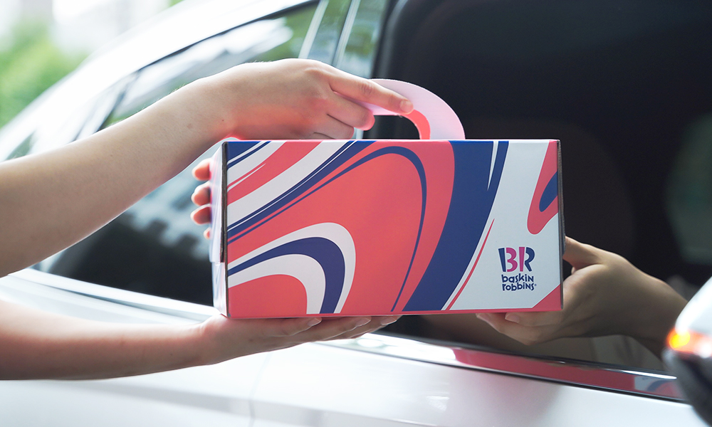 포장 패키지로 깔끔하게 전달되는 배스킨라빈스의 드라이브 픽업
