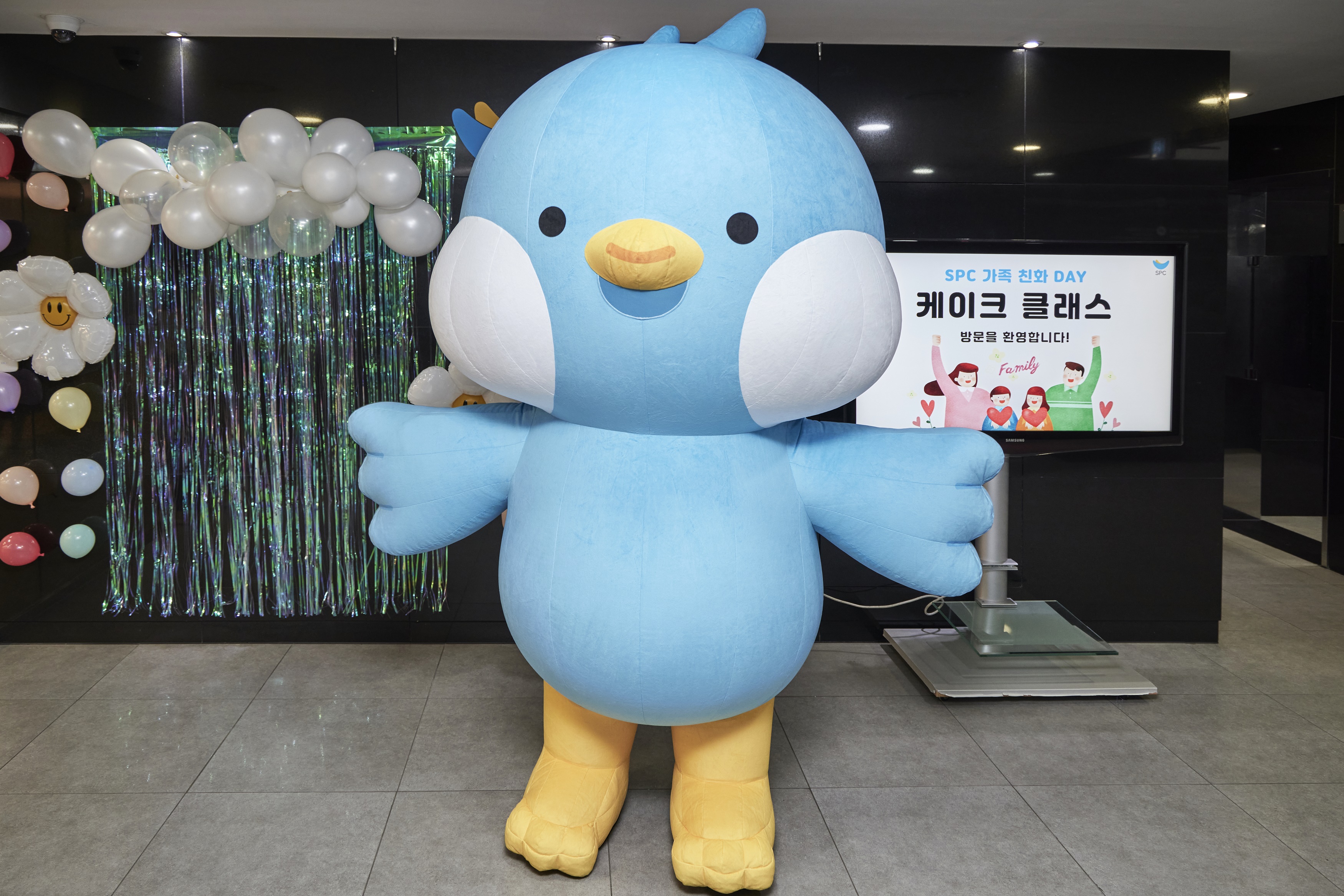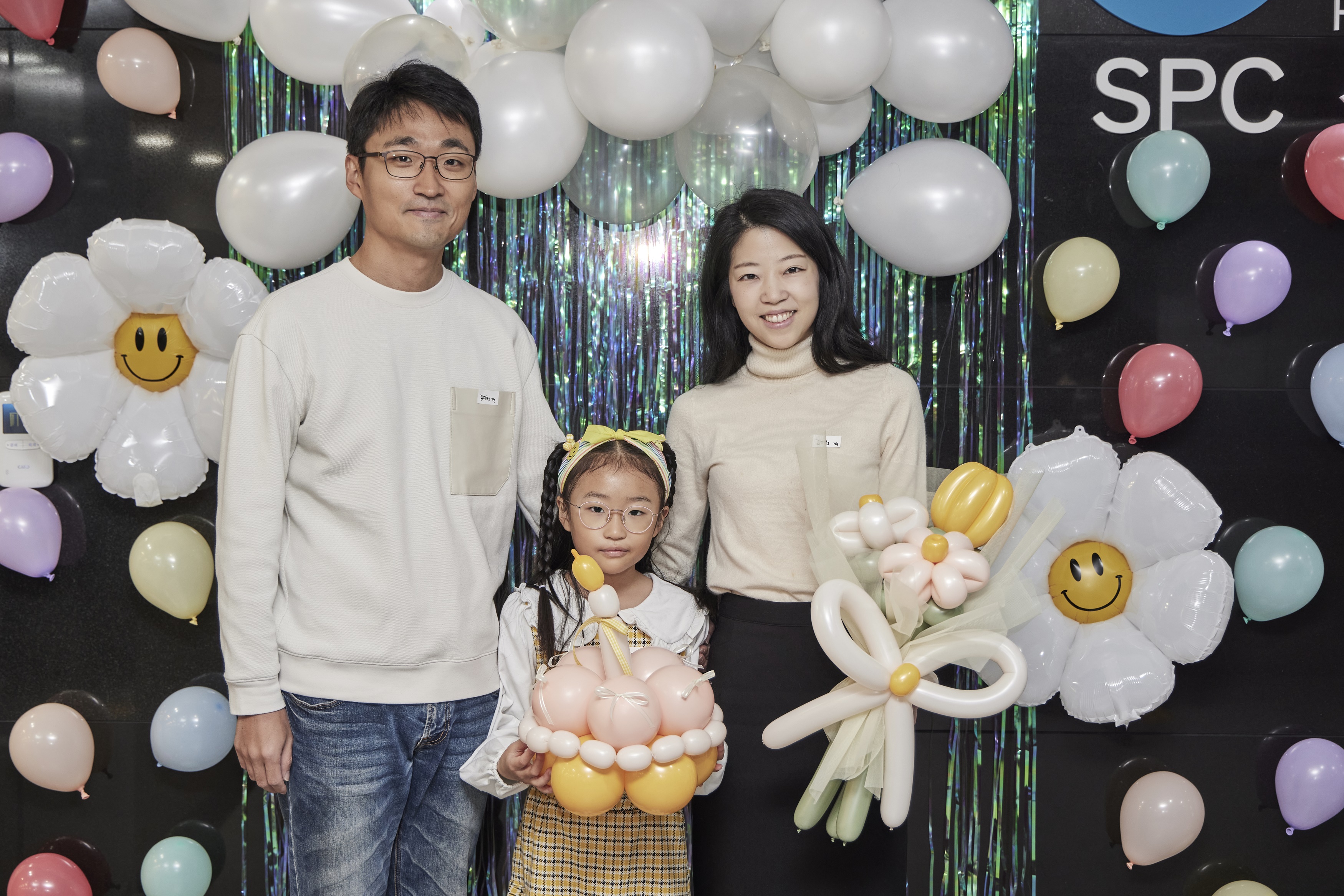 자녀와 함께하는 베이킹 클래스가 진행된 SPC 미래창조원 4층 식품과학대학 로비에는 가족들을 위한 포토존이 마련되었습니다. 자녀 초청 클래스인 만큼 화려한 풍선장식으로 임직원 가족들의 방문을 환영해 주었습니다. 특별한 날을 기념하며 열두 가족이 빠짐없이 가족사진을 남겼는데요. 풍선 부케까지 받아든 임직원 가족들의 입가에 금세 미소가 번졌습니다.