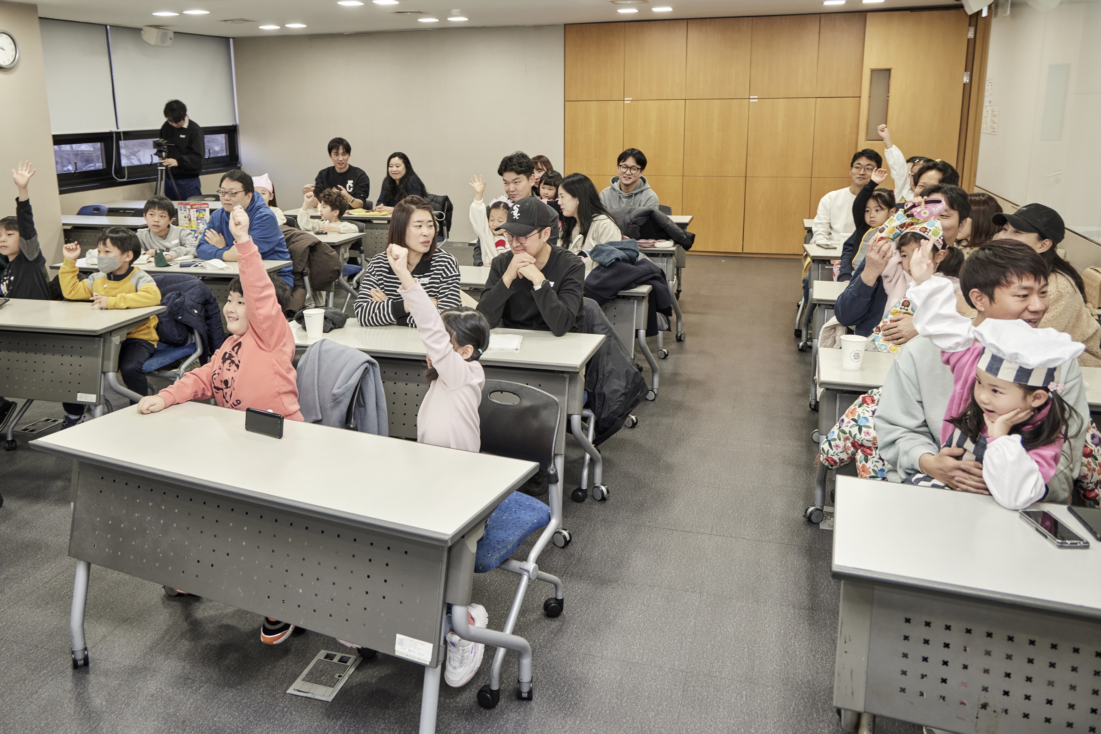 먼저, 레크리에이션을 위해 식품과학대학 강의장에 가족들이 모였습니다. 이날 레크리에이션은 행사에 대한 간단한 오리엔테이션 후에 ‘SPC 퀴즈’ 이벤트가 열렸는데요. ‘SPC 제품 세 가지 말하기’ 퀴즈가 나오자 재빠르게 손을 드는 아이들의 모습에서 평소 부모님이 일하는 회사에 대한 관심과 애정을 엿볼 수 있었습니다. 부모님이 일하는 회사에 방문해 특별한 시간을 보내면서 아이들이 느낄 자부심까지 생각하니, 이번 행사가 더욱 특별하게 다가왔습니다.