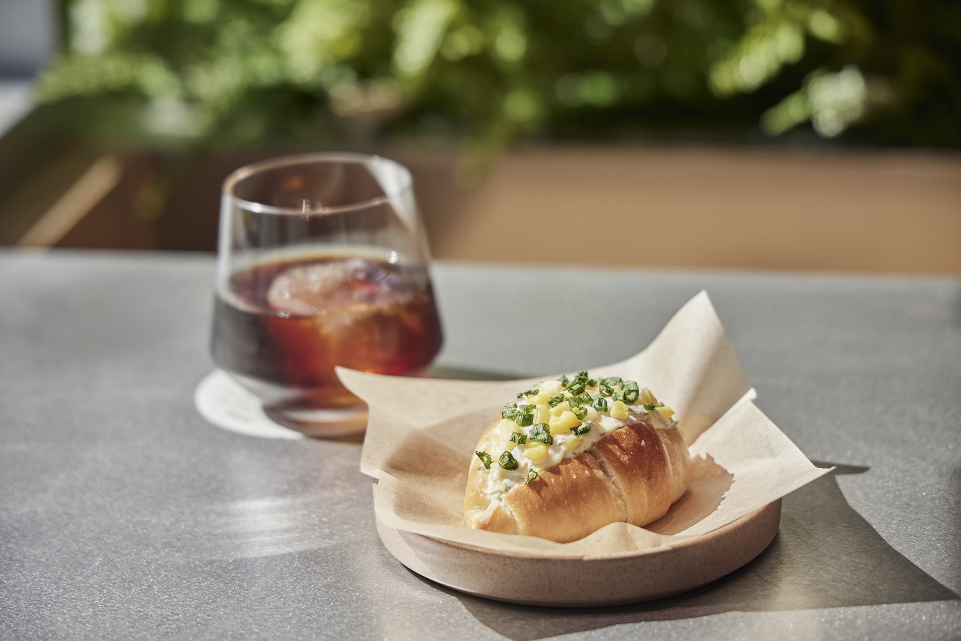 함께 즐기기 좋은 베이커리로는 대파 콘 크림 소금빵을 추천합니다. 겉은 바삭하고 속은 쫄깃한 소금빵 위에 신선한 대파와 콘, 크림치즈를 올려, 달콤 바삭한 식감이 매력적인 메뉴랍니다.