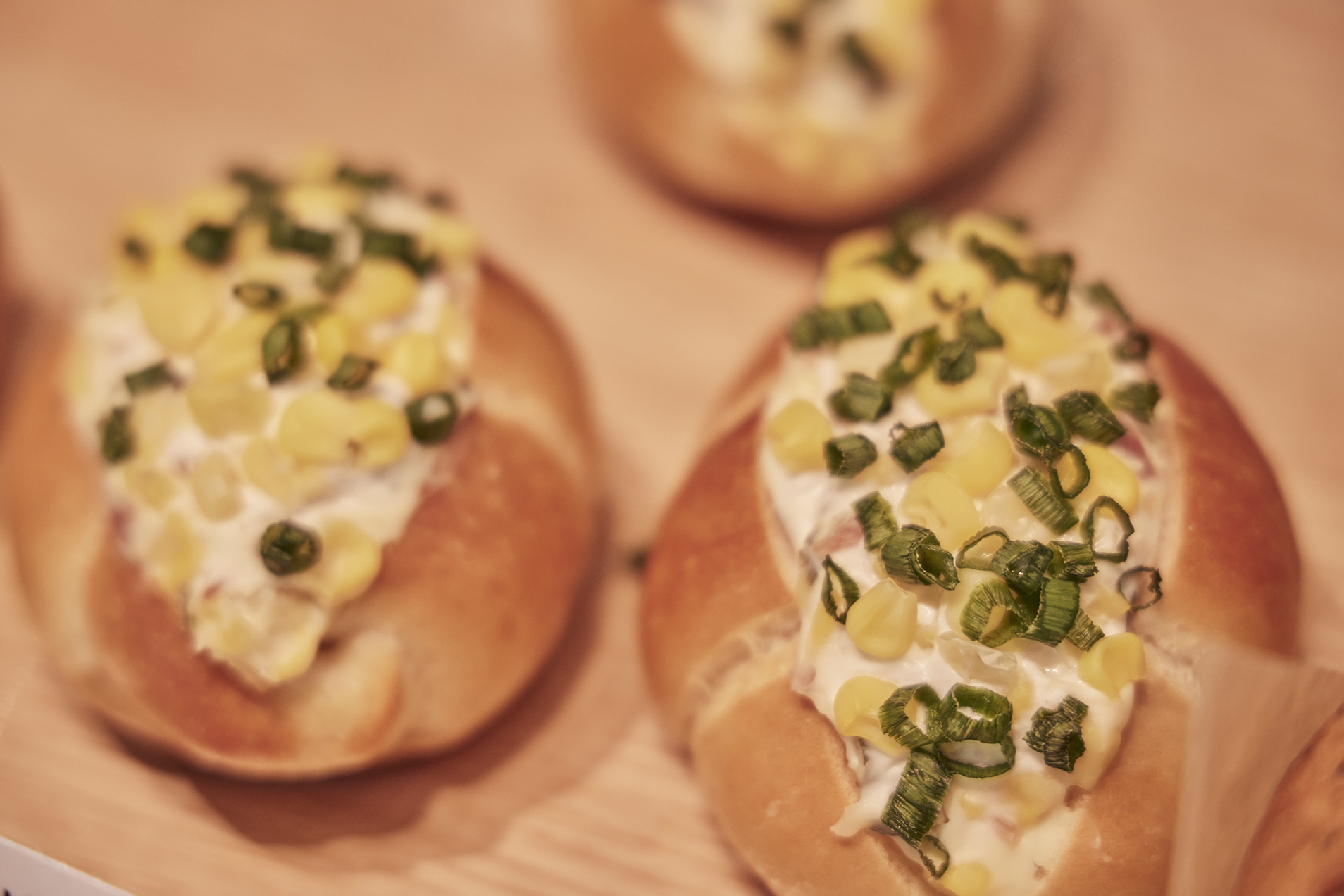 함께 즐기기 좋은 베이커리로는 대파 콘 크림 소금빵을 추천합니다. 겉은 바삭하고 속은 쫄깃한 소금빵 위에 신선한 대파와 콘, 크림치즈를 올려, 달콤 바삭한 식감이 매력적인 메뉴랍니다.