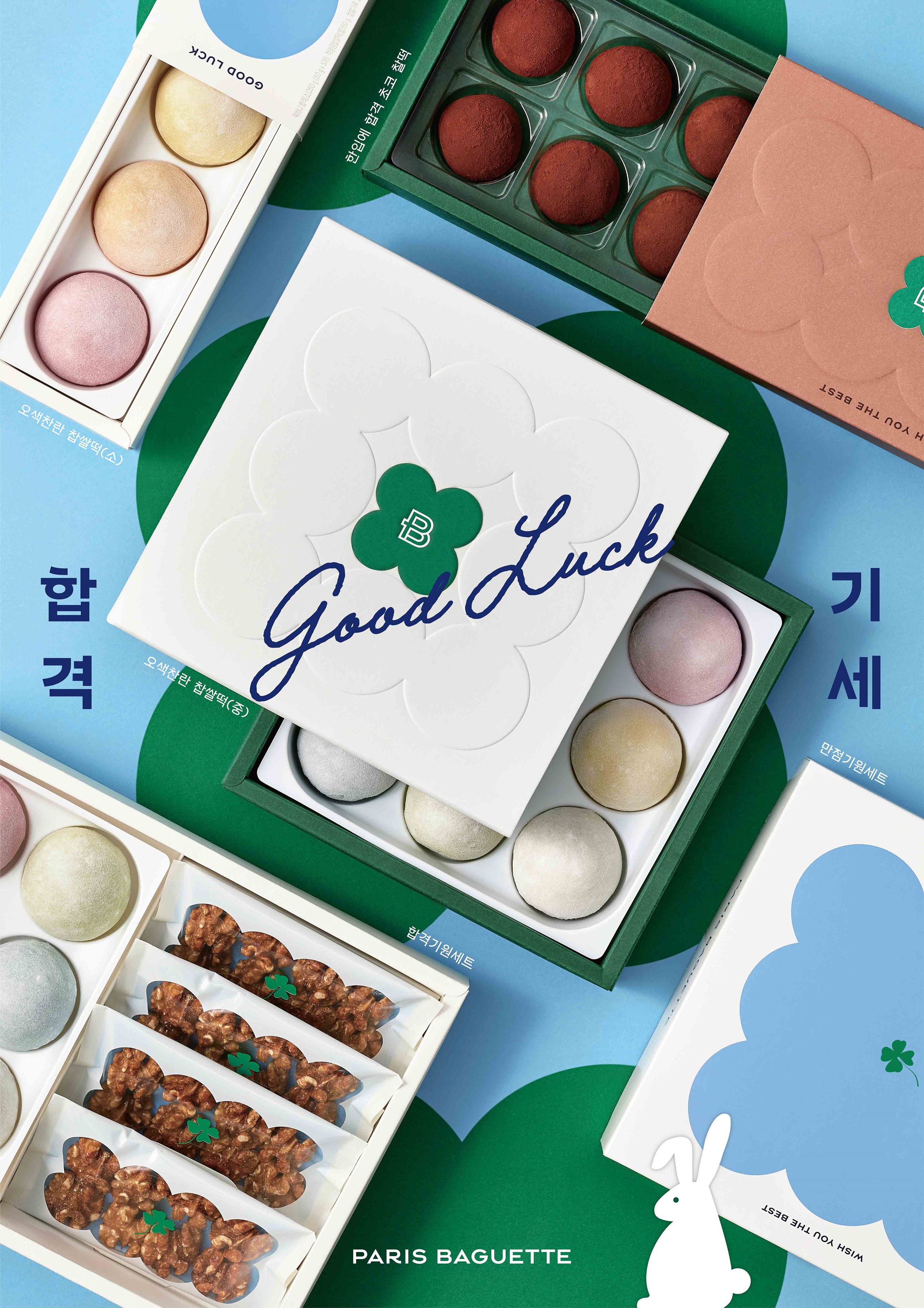 파리바게뜨 수능선물세트는 ‘온 우주가 널 응원해’를 슬로건으로, 행운을 의미하는 네잎클로버와 합격을 기원하는 마음을 담은 찰떡 등 재치 있는 스토리를 제품에 반영했다.