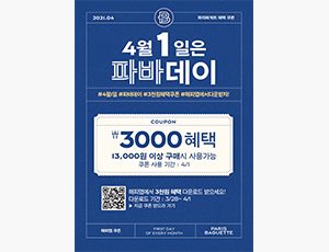 ‘파바데이’는 매월 1일 매장에서 제품 구매 시 총 구매액이 1만 3천 원 이상일 경우 소비자에게 3천원 혜택을 제공하는 프로모션이다.