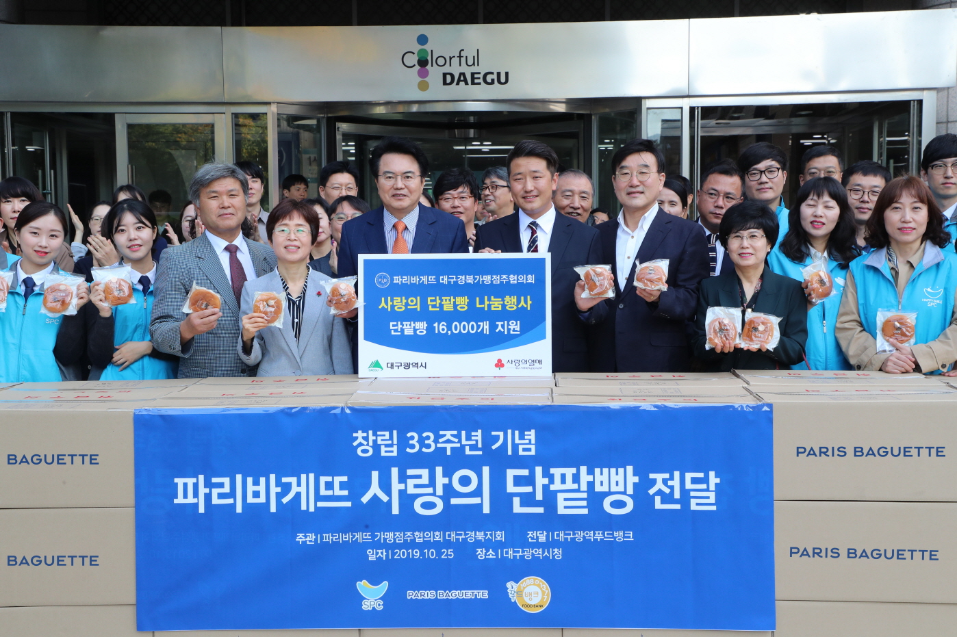 파리크라상 창립 33주년(10월 17일)을 기념해 대구경북지역에 위치한 파리바게뜨 160개 가맹점주가 자발적으로 참여한 이 행사에서 가맹점주협의회는 1만 6천여 개의 단팥빵을 대구경북지역 푸드뱅크에 기부했다. 또한 기부식품에 대한 인식개선과 식품기부 활성화를 위해 대구시 동성로에서 시민을 대상으로 유인물과 단팥빵을 나눠주는 캠페인도 진행했다.