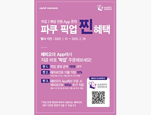 한편, 설 명절 선물세트는 해피오더 어플리케이션을 통해 픽업, 딜리버리 이용이 가능하다. 서비스를 이용하는 모든 고객은 5% 혜택 및 해피포인트 5% 적립 등 최대 10%의 혜택을 받을 수 있다. 자세한 내용은 해피앱과 파스쿠찌 홈페이지에서 확인할 수 있다.