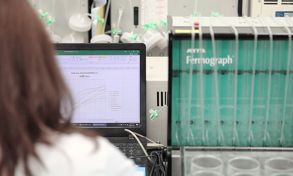我们研究所的最大成果是“SPC集团独创的发酵种开发”。最具代表性的是,在2016年,经过11年努力的结果,我们研发出了“适用于制作面包的纯本土酵母”。通过保留韩国特有的发酵种,获得了发酵种,并且在依赖海外进口的韩国面包产业的状况下,实现了技术独立。之后,在2019年,我们研发出了可以同时提高面包味道和营养的“上味种”。由此,开启了以酵母和乳酸菌的共同发酵制作面包的新时代。并且,我们同时利用发酵食品制造中使用的代表性微生物酵母的优点和乳酸菌的优点实现的酵母-乳酸菌的共同发酵技术的开发,成为了发酵食品产业的大趋势(Mega trend)。通过自主研发发酵种,我们研究所引领了这种大趋势。