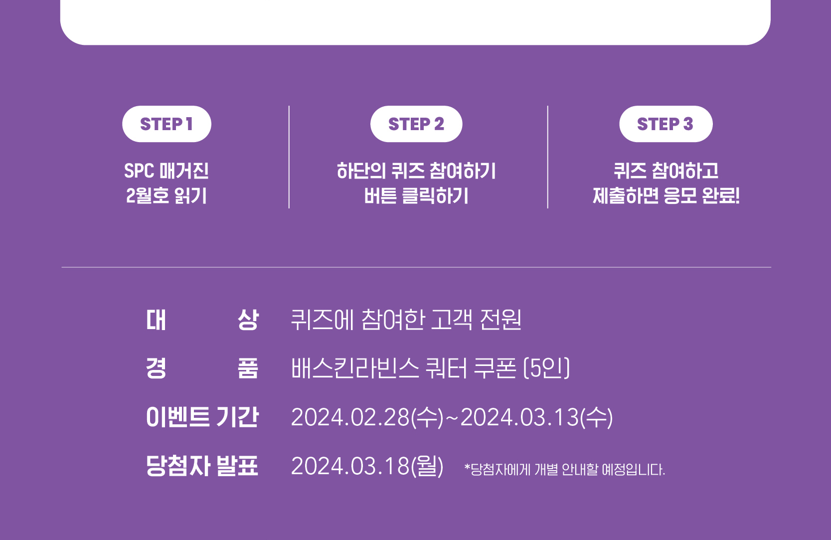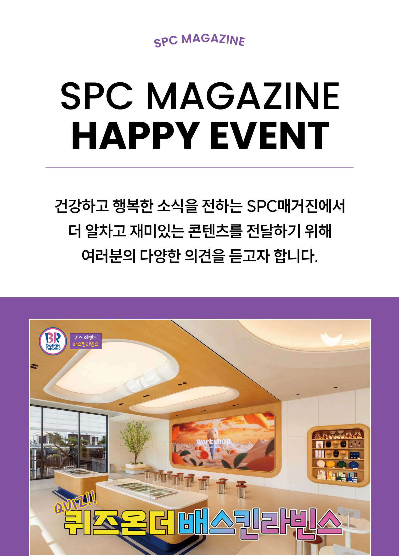 Tags: SPC2월 이벤트초성퀴즈Post navigationPreviousPrevious post:달콤한 상상이 현실이 되는 실험과 창조의 공간, ‘워크샵 바이 배스킨라빈스’NextNext post:달콤한 상상이 현실이 되는 실험과 창조의 공간, ‘워크샵 바이 배스킨라빈스’