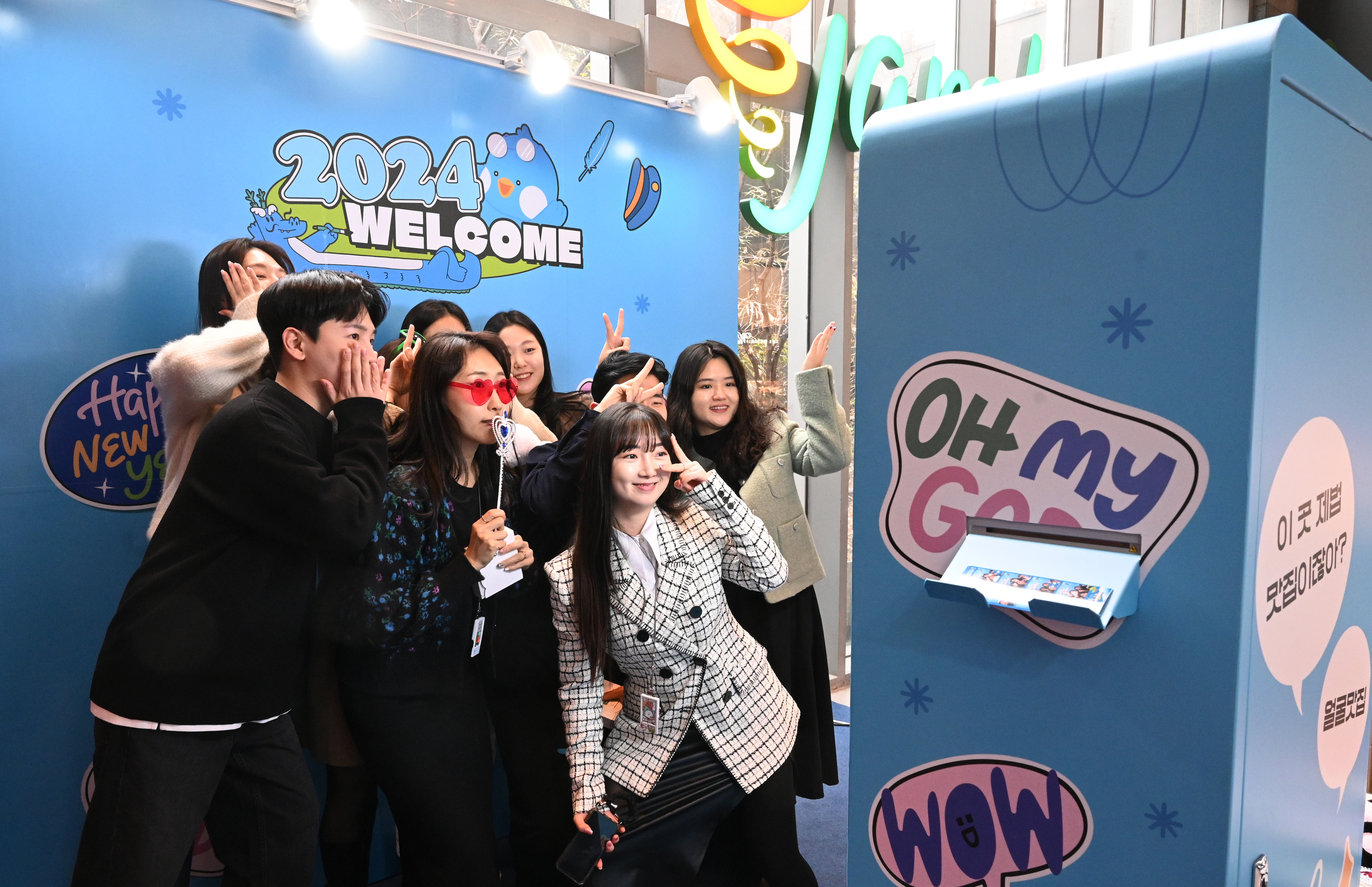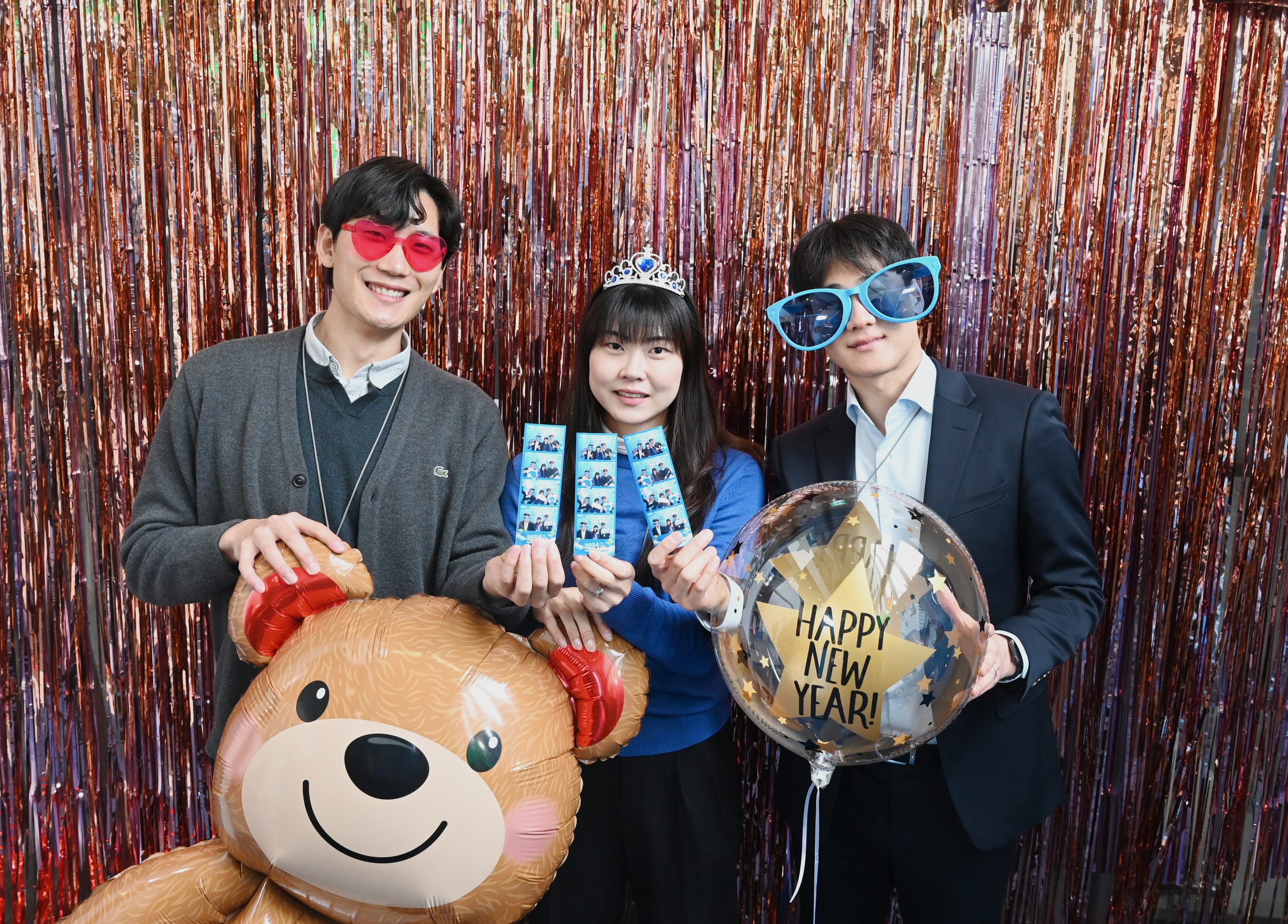 형형색색의 선글라스와 왕관은 물론 새해 느낌 물씬 나는 문구가 담긴 폼보드 역시 인기 아이템이었는데요! 다들 한껏 자신감 있는 표정을 뽐내며 좋은 추억을 남기는 자리가 되었답니다.