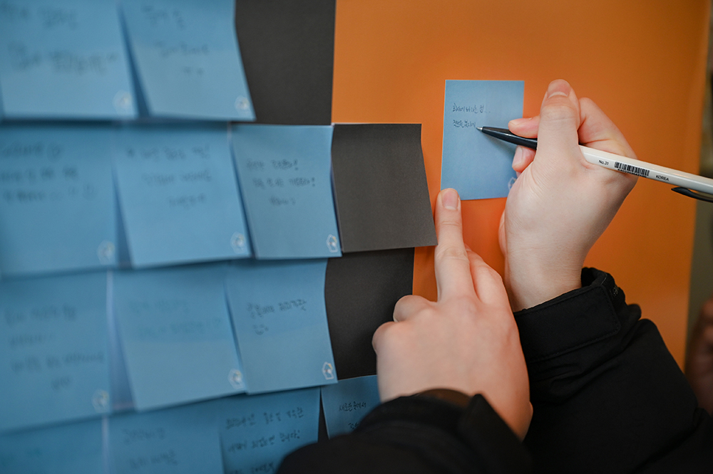 임직원들의 바람으로 차곡차곡 쌓인 포스트잇 월