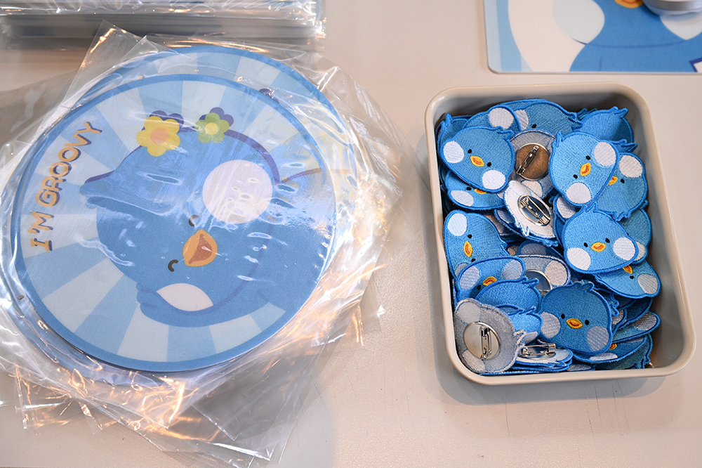 이렇게 포스트잇까지 적고 나면 ‘꽝 없는 뽑기’를 뽑을 수 있는데요. 그루비 키링 10종, 마우스패드 2종, 와펜 중에 선물을 받게 됩니다. 키링에 당첨된 임직원은 무려 10종이나 되는 키링 중 어떤 걸 고를지 행복한 고민에 빠졌다는데요. 모두가 쉽고 즐겁게 참여하면서 꽝 없이 굿즈를 받을 수 있는 행사로 즐거움이 배가 되었습니다!