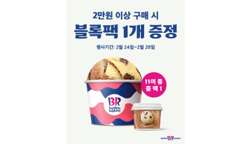 비알코리아(주), 보도자료2025. 02. 2428일까지 매장 방문 고객 대상 2만원 이상 제품 구매 시 블록팩(4,000원) 1개 증정 SPC 배스킨라빈스, 블록팩 증정 프로모션 진행 see more..