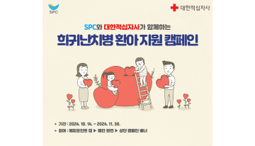 SPC그룹, 보도자료2024. 10. 16복지 사각지대에 있는 이웃들을 지원하는 온라인 사회공헌 사업 SPC, 고객과 함께 희귀난치병 환아 지원하는 ‘해피쉐어 캠페인’ 진행 see more..