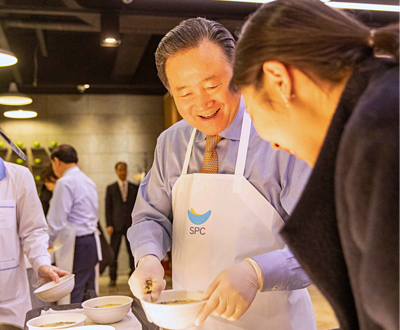허영인 회장, 새해 첫날 직원들에게 직접 떡국 배식