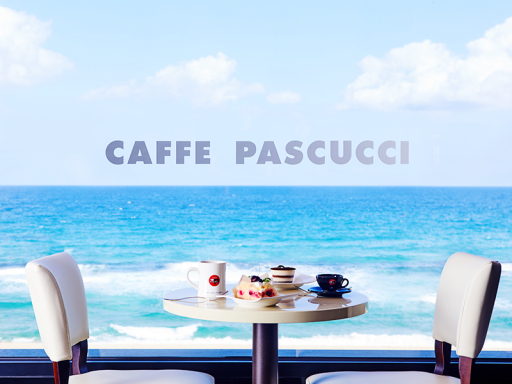가을 바다에서 즐기는 커피 한 잔
