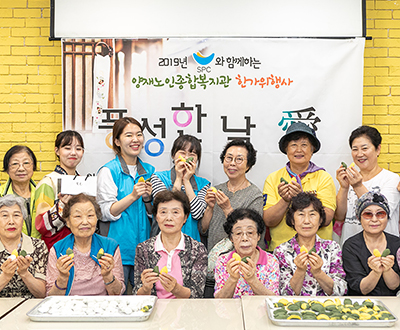 송편빚기 등 봉사활동, 제품과 후원금 전달