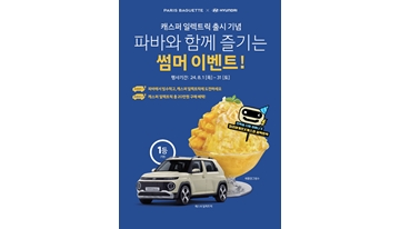 (주)파리크라상, 보도자료2024. 08. 01올여름 파바에서 빙수 먹고 ‘캐스퍼 일렉트릭’ 받자! 파리바게뜨, 빙수 구매 고객 대상 ‘캐스퍼 일렉트릭’ 증정 이벤트 진행 see more..