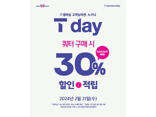 비알코리아(주), 보도자료2024. 02. 21최대 30% 혜택으로 배라 쿼터 아이스크림을 즐길 수 있는 단 하루! SPC 배스킨라빈스, 2월 ‘SKT T day’ 프로모션 진행 see more..