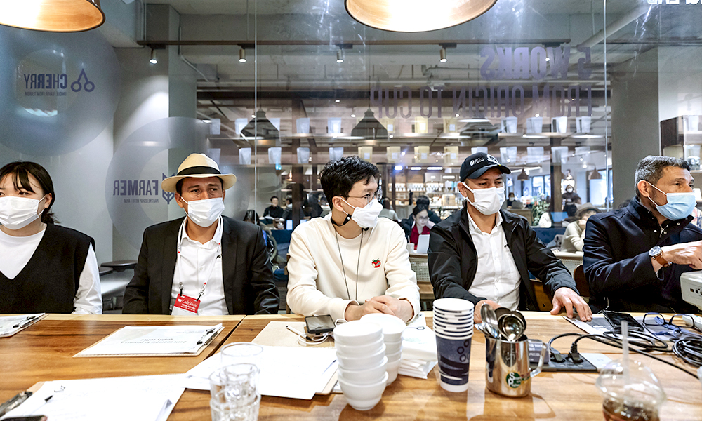 简报结束后,大家一起品尝农场提供的9种样品,回答出关于各咖啡展现出的味道和香味的提问。Coffee@Works的职员们品尝咖啡,对咖啡给予肯定的部分积极地表达了意见。一起参加活动的农场工作人员表示,这是从非生产者角度直接听取顾客声音的难得机会,感到非常有趣。Coffee@Works的职员们也异口同声地表示,可以品尝到各种品种的具有独特个性发酵咖啡,是一次令人非常满意的经历。特别是门店中经常与咖啡为伴的烘焙师和咖啡师们感受到了不同于以往咖啡品种典型的味道,而是体验到了无氧发酵咖啡的全新风味,对此感到意义深远。