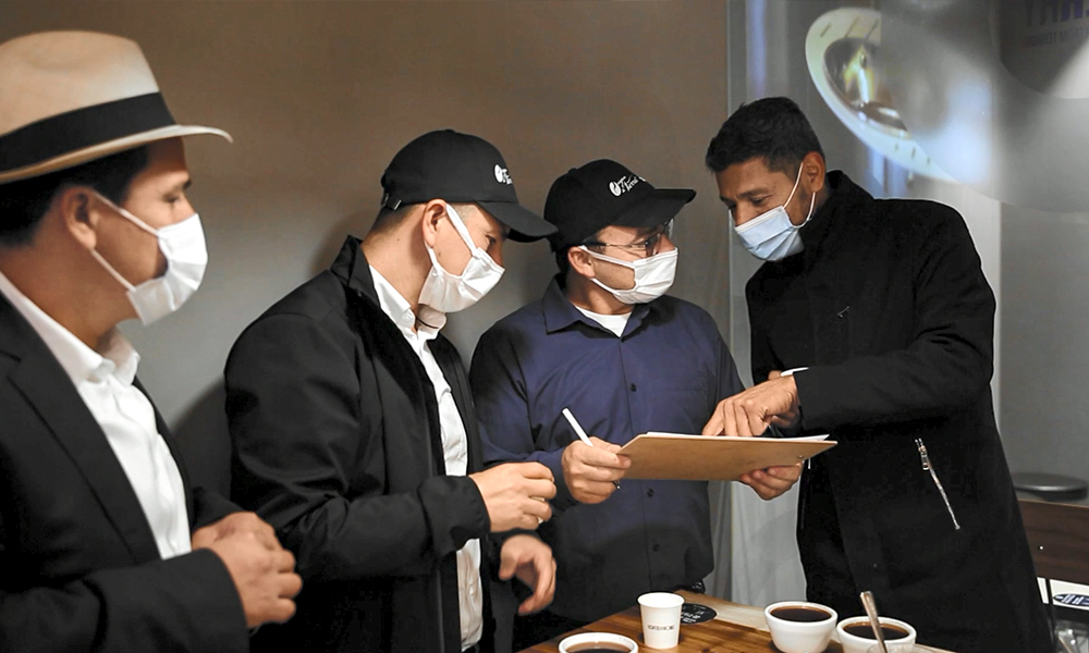 农场负责人和Coffee@Works的职员们一起进行咖啡品鉴。