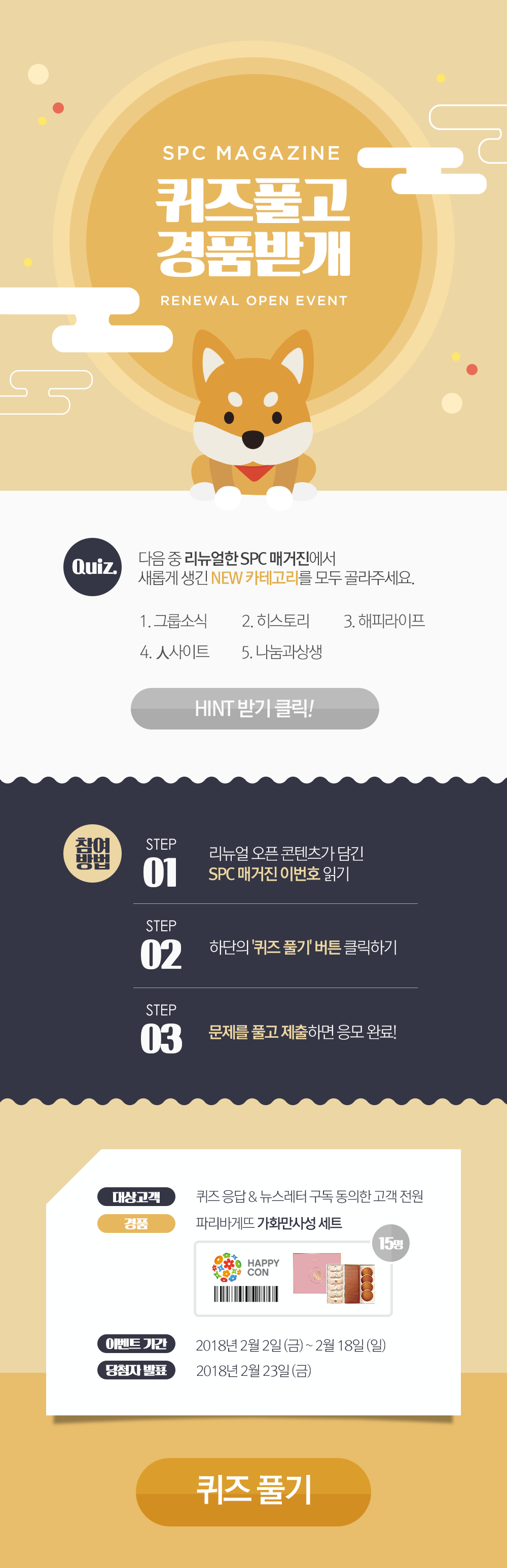 HINT받기클릭!퀴즈풀기 함께 보기 좋은 글 1월 SPC매거진 이벤트프로설문러 1월 SPC매거진 이벤트1월 SPC매거진 이벤트 1월 SPC매거진 이벤트HAPPY NEW YEAR! Tags: SPC이벤트퀴즈풀고경품받개리뉴얼Post navigationPreviousPrevious post:파스쿠찌,제주 전용 음료 3종 출시NextNext post:Editor’s Pick – 2018년 설 선물세트