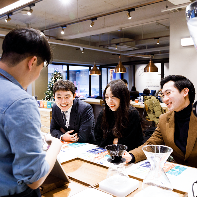 향긋한 커피 향기가 그 어느 때보다 잘 어울리는 계절입니다. 따뜻한 커피 한 모금이면 꽁꽁 얼었던 몸과 마음까지 녹아 내리는 기분이 듭니다. 스스로 커피 마니아라고 자부하는 우리 회사 직원 3인방은 최근 새롭게 탄생한 커피앳웍스 동부이촌동점 매장 내에서 진행된 커피클래스에 참가하여 다양한 스페셜티 커피와 추출방법을 경험하였습니다.