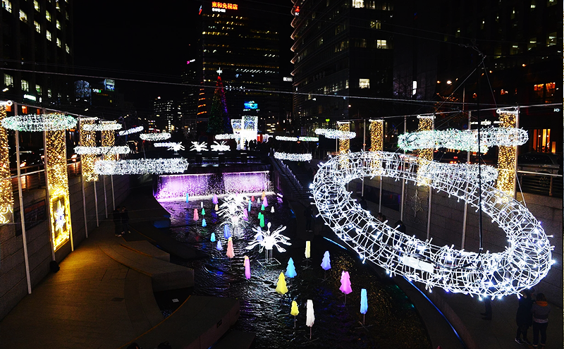 도심에서 연말 느낌을 물씬 느끼고 싶은 분들에게는 인구 천만 서울 시민의 쉼터, 청계천을 추천합니다. 청계천은 각종 문화행사부터 거리 공연까지 볼거리가 다양해 사람들의 발길이 끊이지 않는 곳입니다. 연말 청계천 일대에서는 약 3주 동안 서울의 밤을 아름다운 빛으로 채우는 ‘2017 서울 크리스마스 페스티벌’이 열립니다.