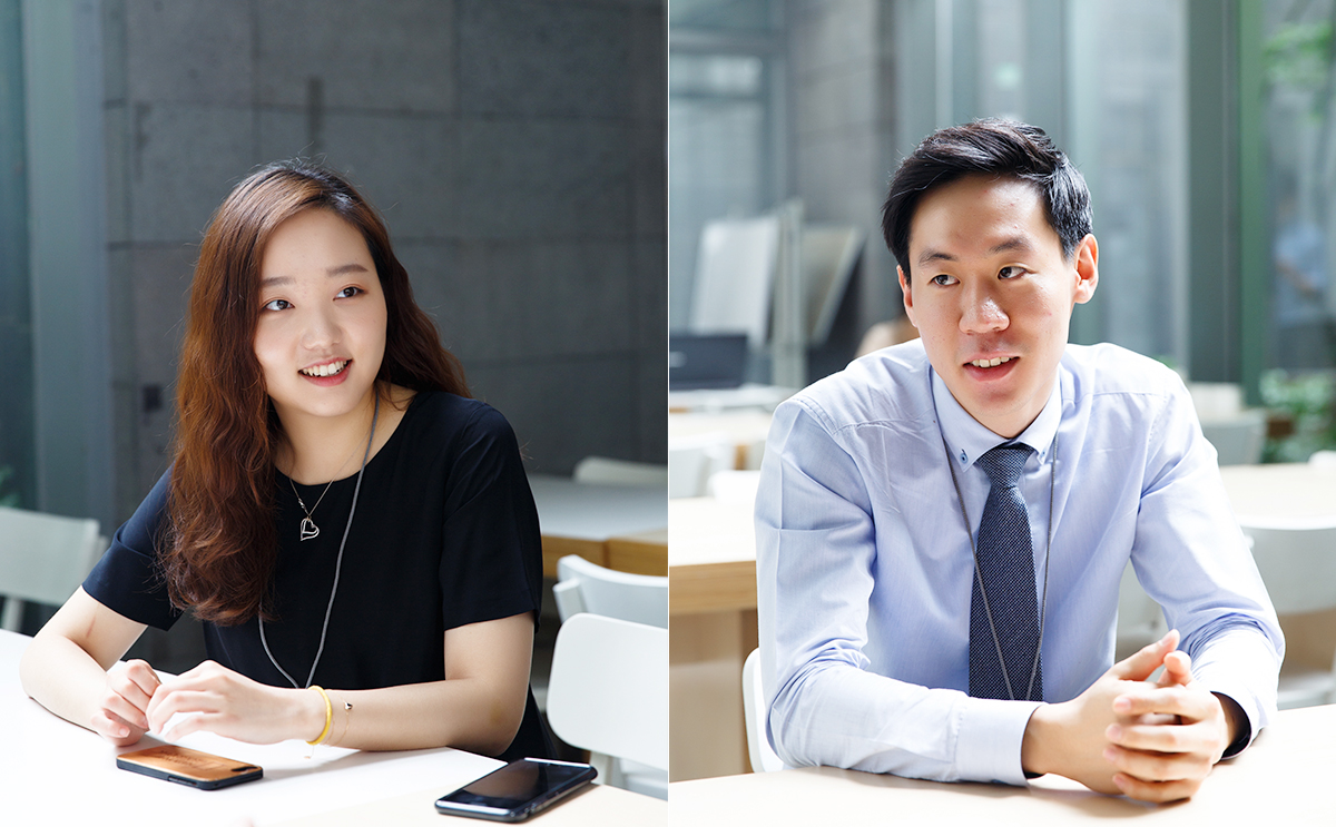 l 하나의 아이디어가 상품화가 되는 과정을 체험해보면서 많은 것을 배웠다는 이연주 사원(좌) 김기찬 사원(우)