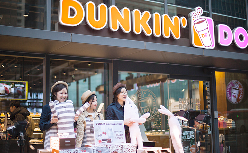 ㅣ 크리스마스 판촉물을 홍보하고 있는 던킨도너츠 강남본점 직원들