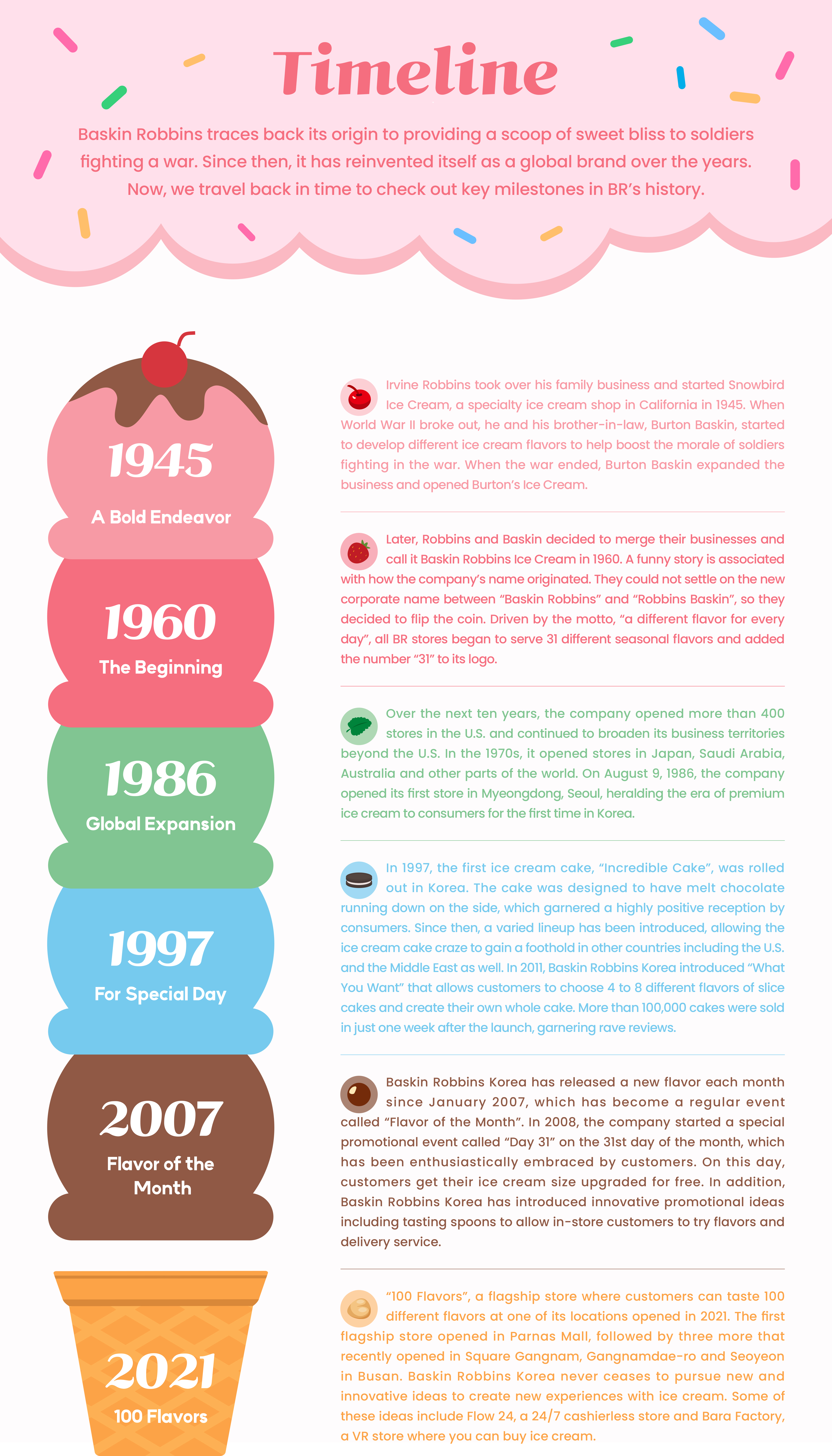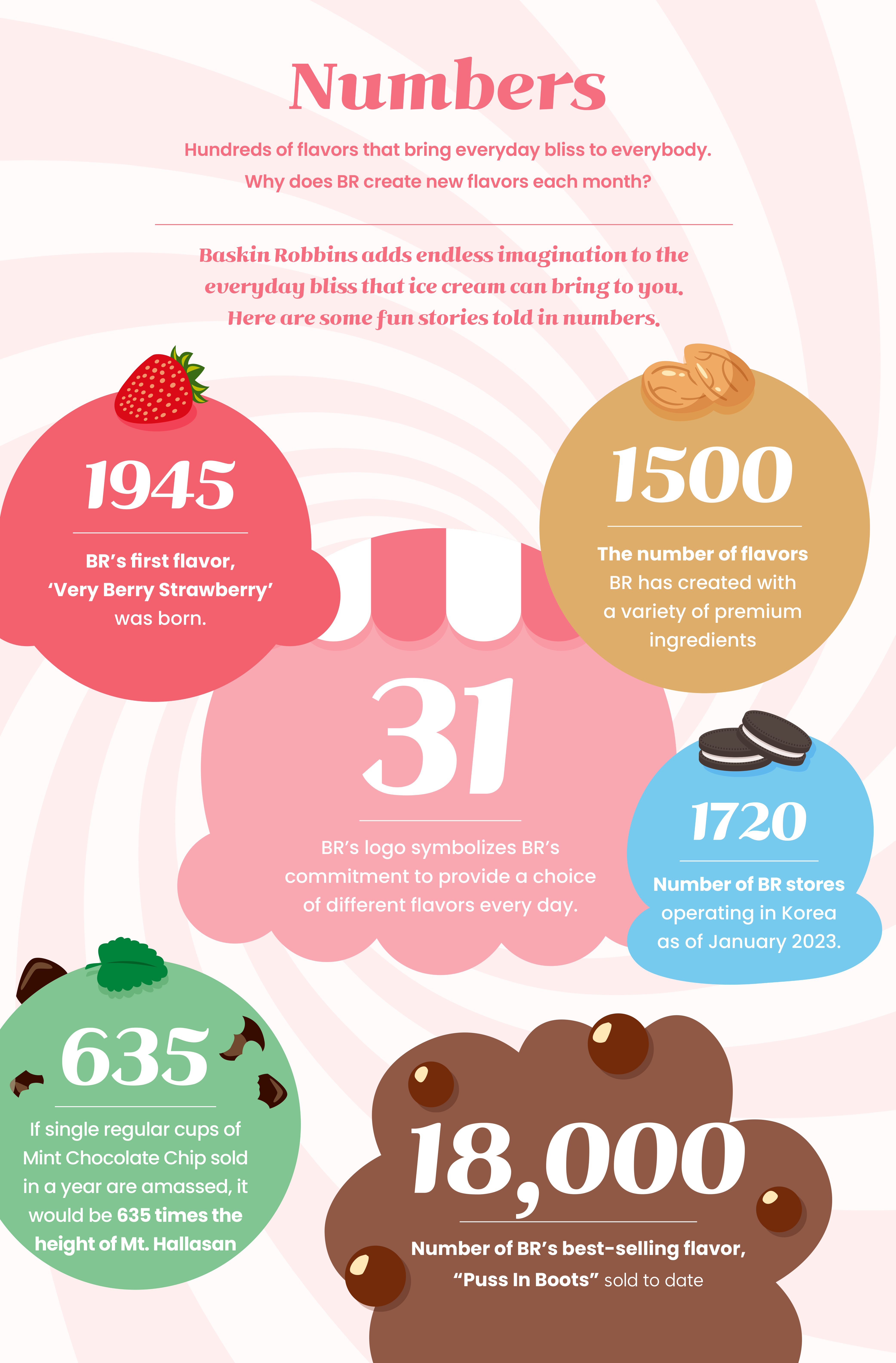 Over the past 80 years since its foundation, BR has been driven by the passion to satisfy varying tastes of individual consumers and provide a mouthful of bliss to everyone, delivering 31 different kinds of blissful flavors to customers.