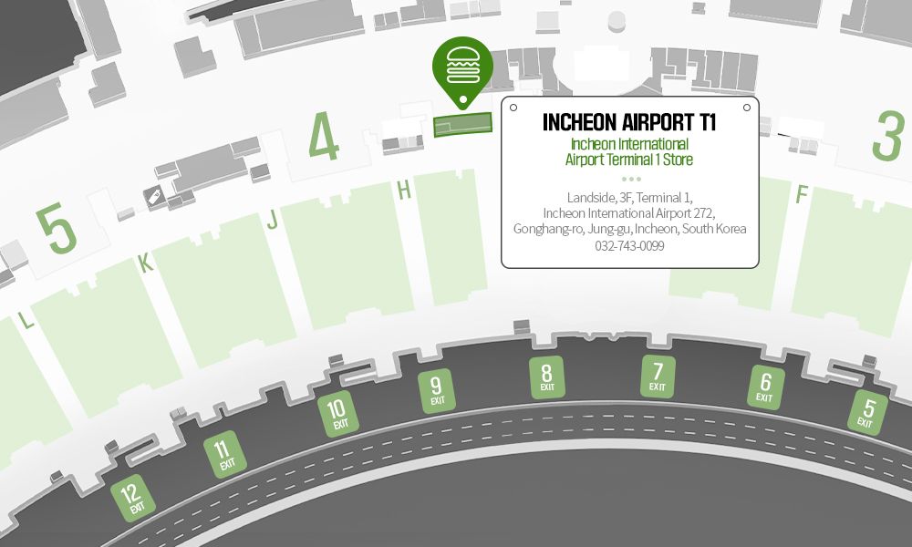 Shake Shack Incheon Airport T1 is located between departure gates 3 and 4 on the 3rd floor of Incheon International Airport Terminal 1